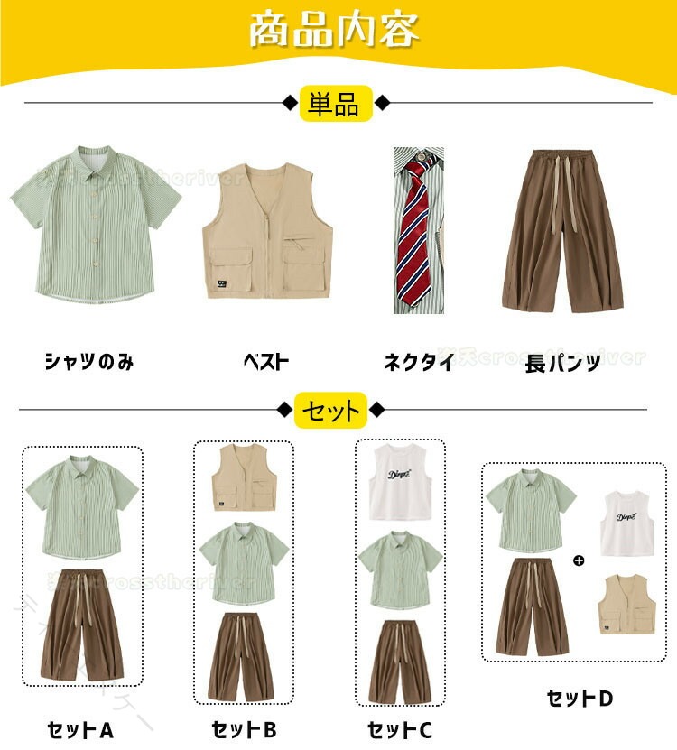 キッズダンス衣装 ストライプシャツ グ スポーツ アウトドア 通販 シャツのみ ベスト ネクタイ 長パンツ セットA セットB セットC セットD 110cm 120cm 130cm 140cm 150cm 160cm 170cm 180cm