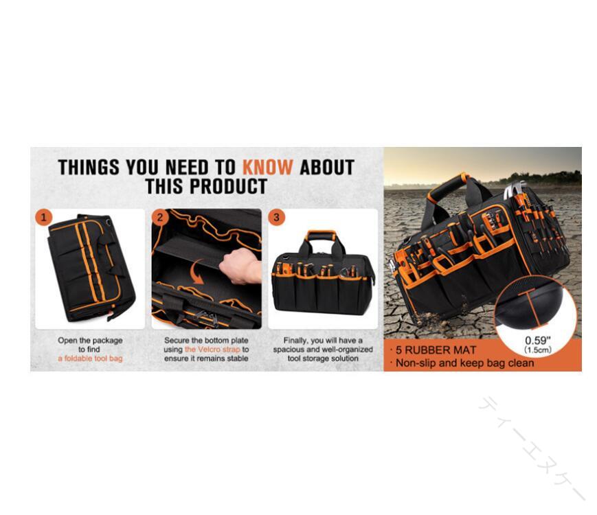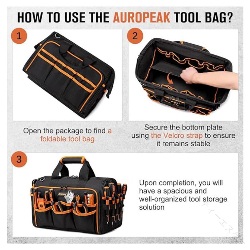 .17 インチ 工具バッグ は 厚手 オックスフォード 素材 を 使用し 耐磨耗 性 に 優れ た 頑丈 な 現行モデル です。収納 力 が 高く 持ち運び に 便利 な 作業バッグ として 工具箱 代わり に も 最適 で 携帯用 に も 便利 です。。
