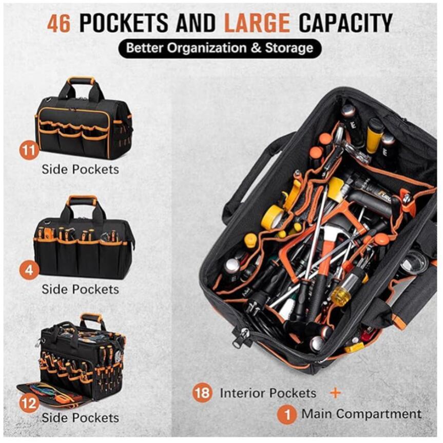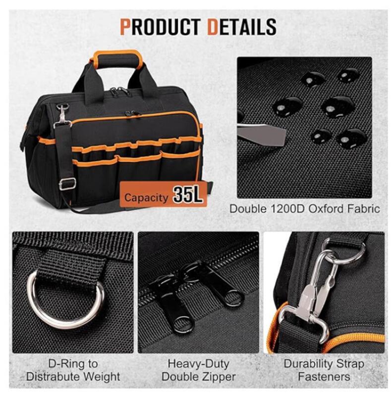 工具バッグ 17 インチ 現行モデル 厚手 オックスフォード 耐磨耗 頑丈 持ち運び便利 収納 工具箱 作業バッグ 携帯用 バッグ