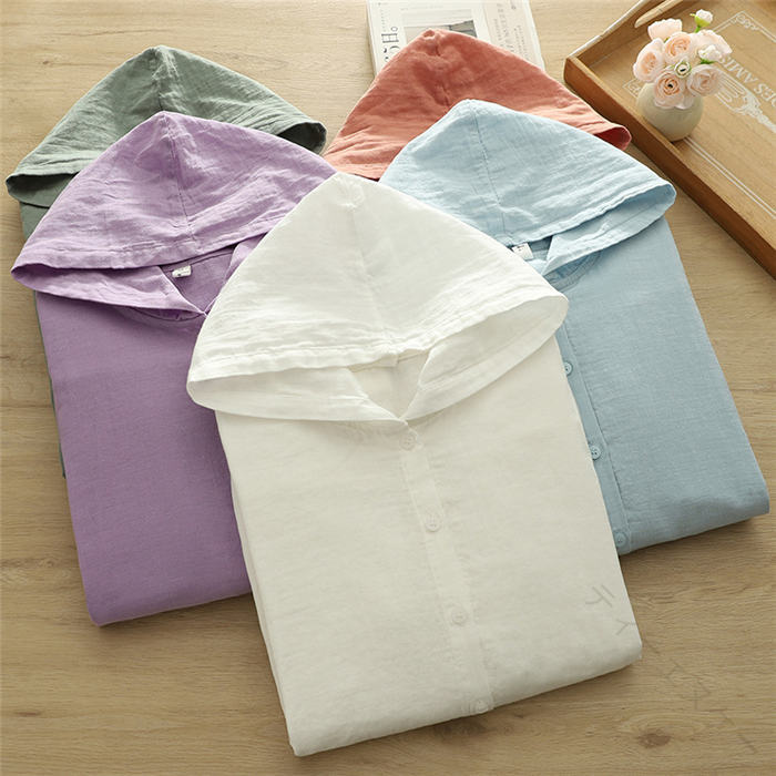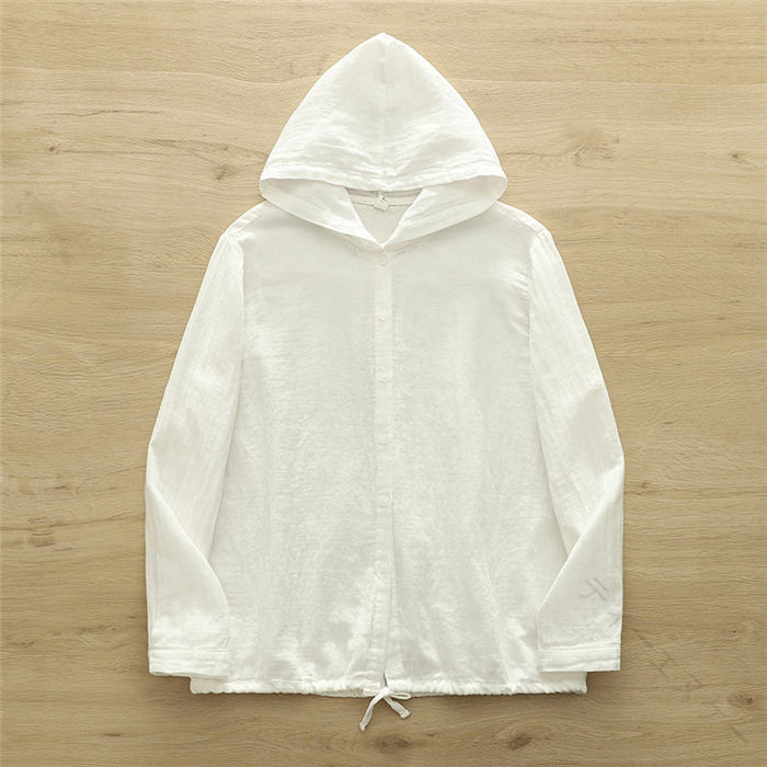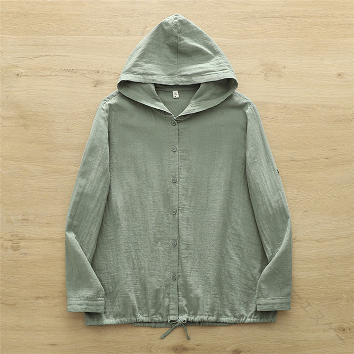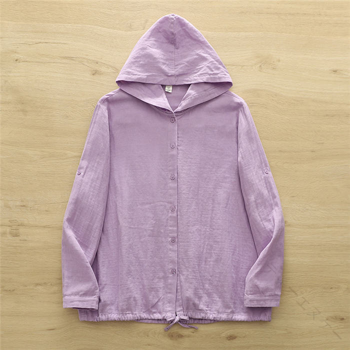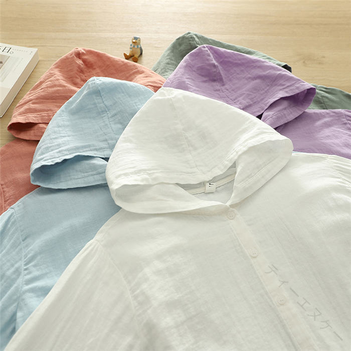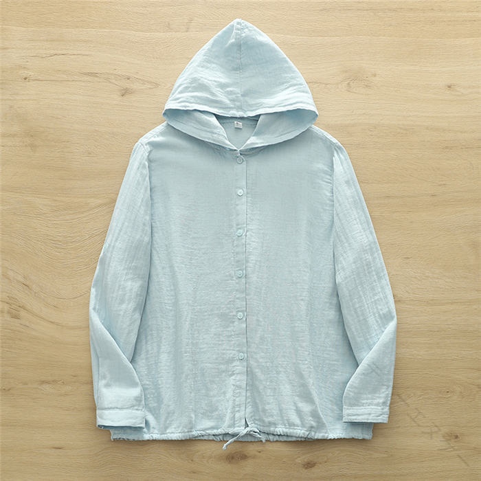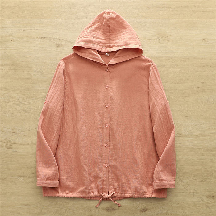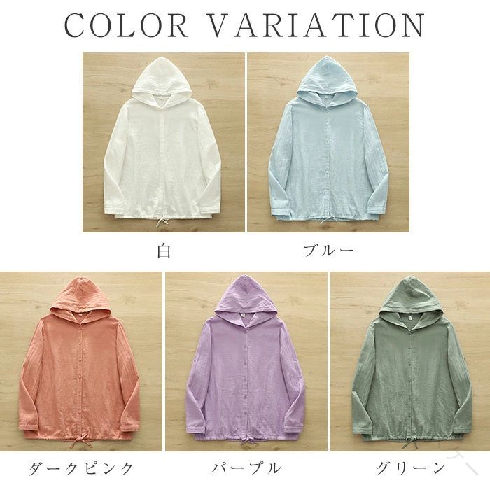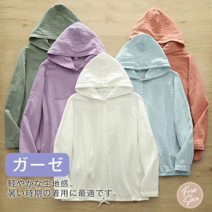 レディース パーカー 長袖 春 夏 ダブルガーゼ 無地 ボタン 前開き ガーゼカーディガン フード トップス ガーゼパーカー