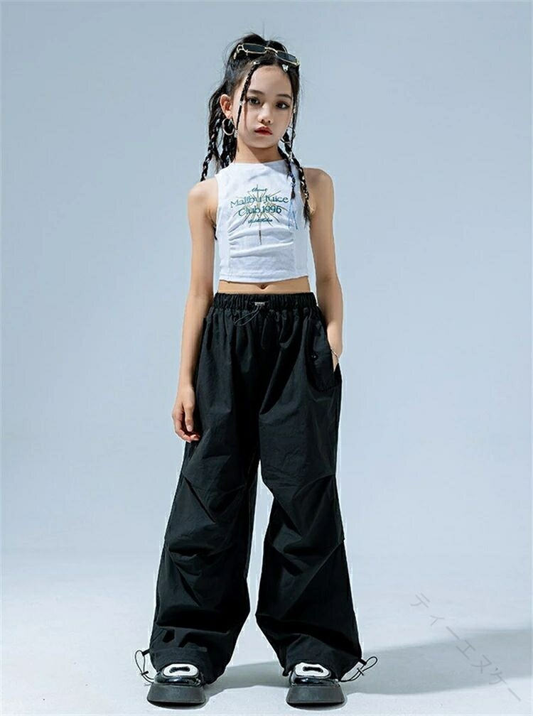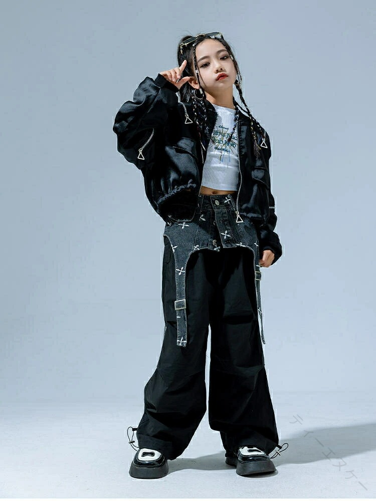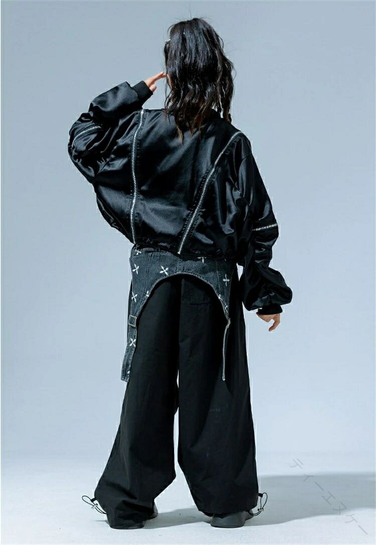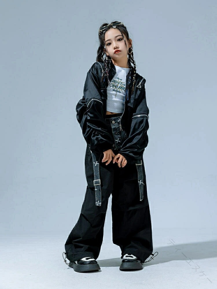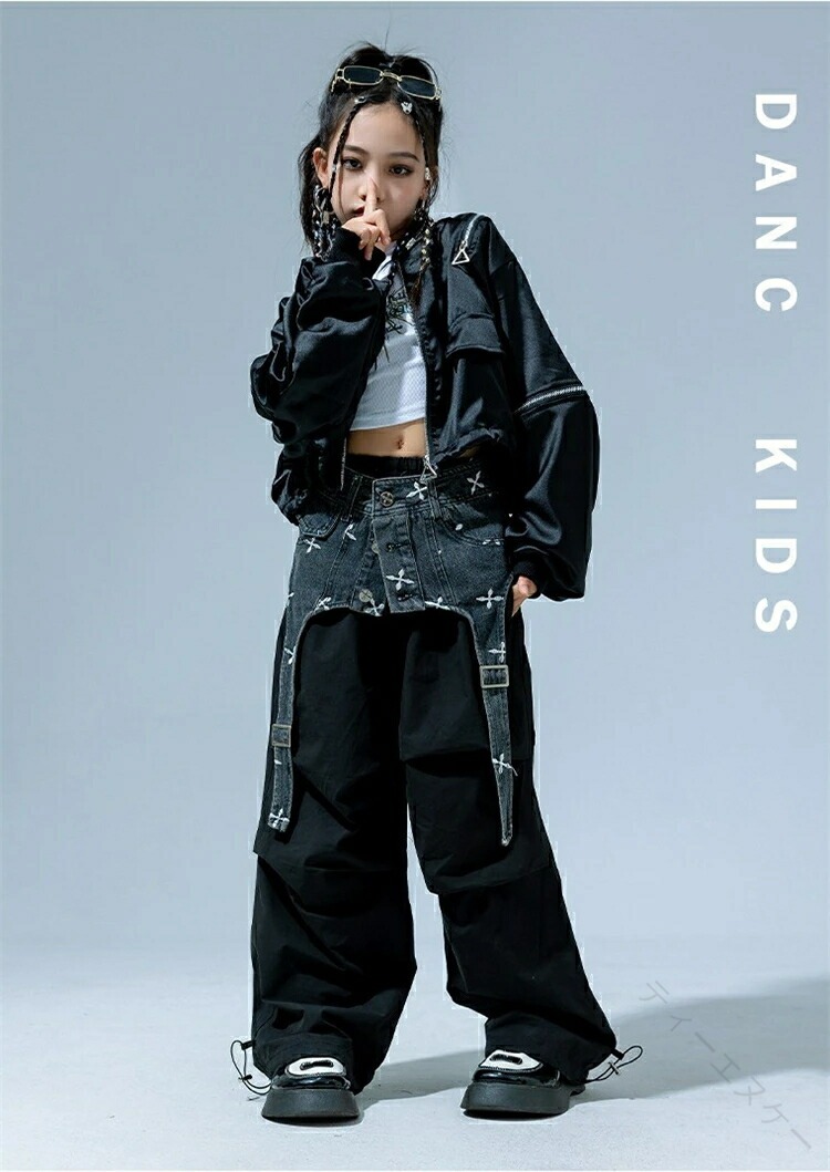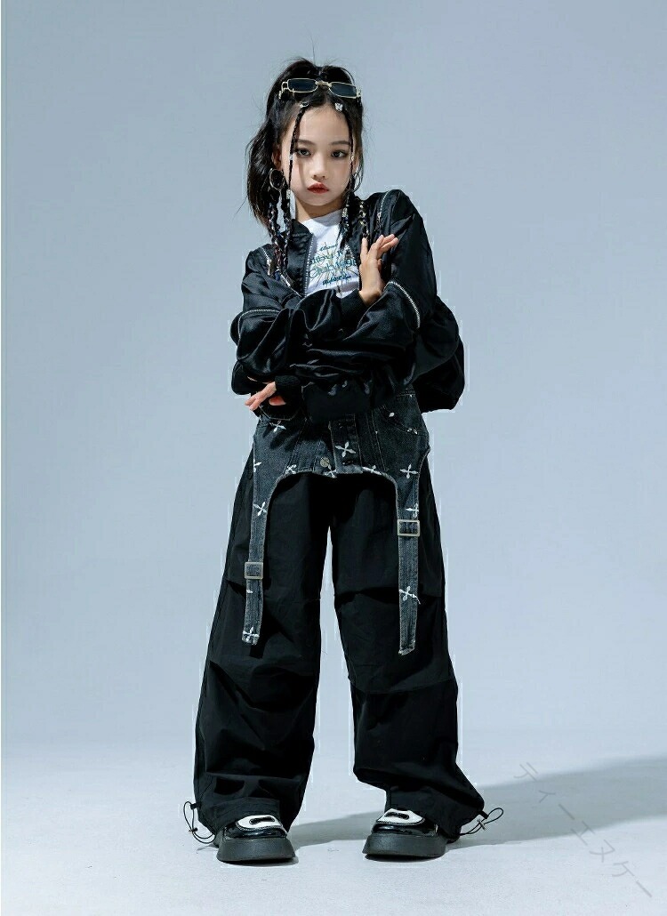 ダンス 衣装 キッズ セットアップ ジャケット 黒 パンツ 長袖 ヒップホップ キッズダンス 女の子 ストリート ダンスウェア おしゃれ レッスン hiphop 原宿系