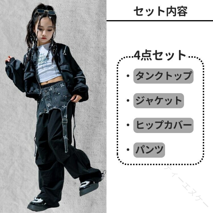 ダンス 衣装 キッズ セットアップ ジ キッズ ベビー マタニティ 続々登場 110cm 120cm 130cm 140cm 150cm 160cm 170cm 180cm 4点セット タンクトップ ジャケット ヒップカバー パンツ