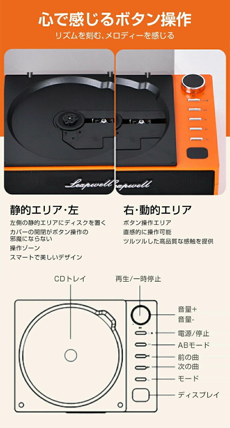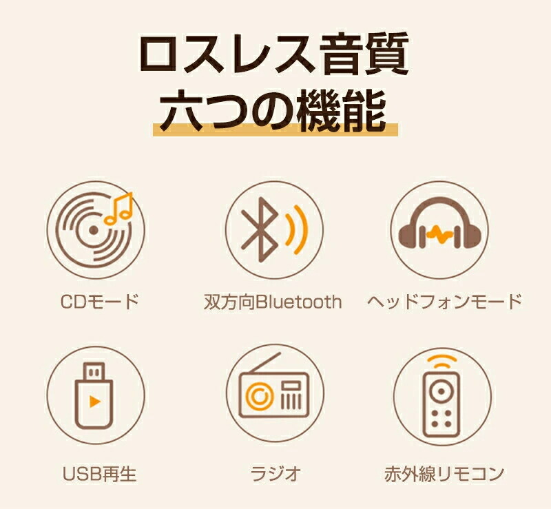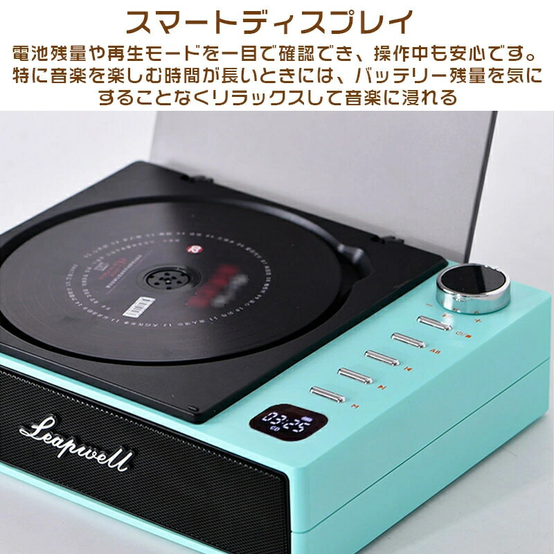 CDプレーヤー ポータブル Bluetooth 家庭用 ダイヤル操作 高音質 誕生日プレゼント 卓上 デスクトップ CD プレーヤー 語学学習 おしゃれ スマートデジタル表示 2600m リラックス用