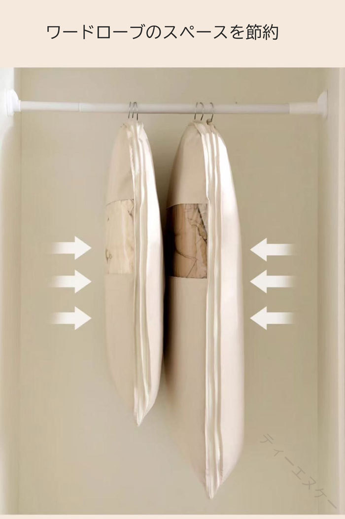 .衣類 圧縮 袋 大容量 吊るせる 収納ケース は クローゼット 内 の 衣替え や 衣類整理 に 最適 です。 衣類圧縮ボード と フック ハンガー が 付属 し、 ダウンジャケット や ジャケット など かさばる 衣類 も コンパクト に 収納 可能。 ほこり防止 機能 で 大切 な 衣類 を 清潔 に 保ち、 多機能 で 便利 な 収納 バッグ です。。
