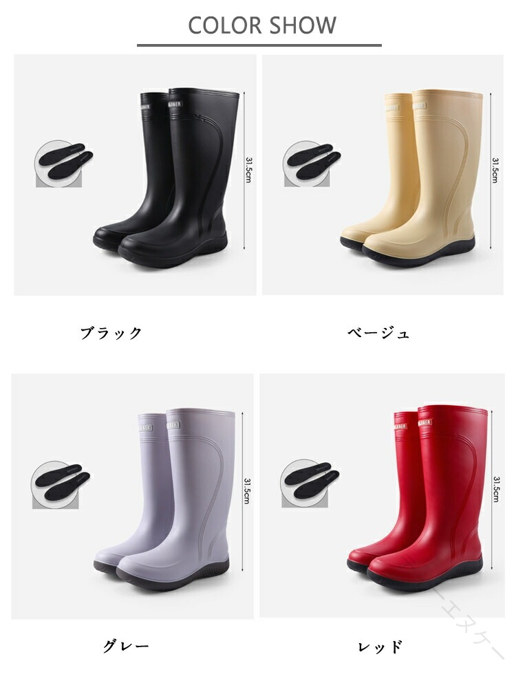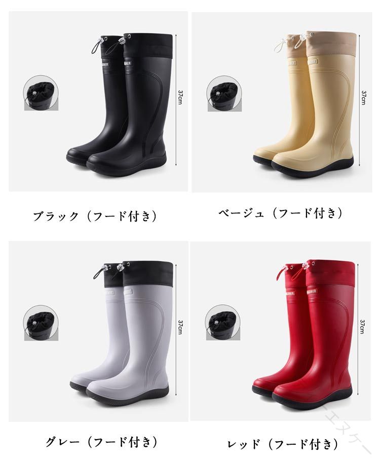 レインブーツ ロングレインブーツ 長ぐ 靴 通販 ブラック ベージュ グレー レッド ブラック(フード付き) ベージュ(フード付き) グレー(フード付き) レッド(フード付き) 36(23cm) 37(23.5cm) 38(24cm) 39(24.5cm) 40(25cm)
