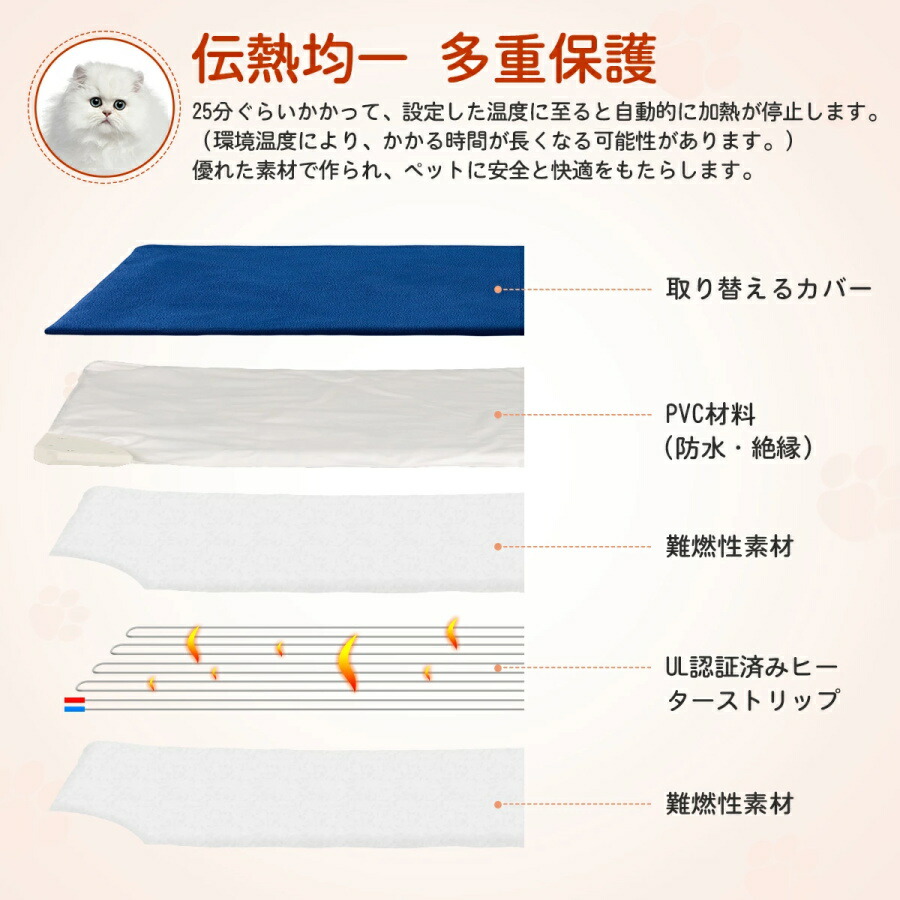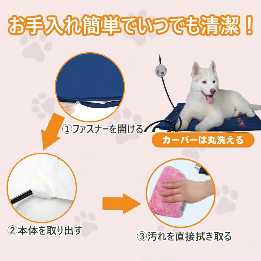 犬猫 ペット用ヒーター ペット用 ホットカーペット 電気ヒーターマット 中小大型 噛み付き防止 防水 過熱保護 カバー付き カバー取り外し可能 洗濯可能 ポカポカ防寒対策 寒波 寒さ対策 秋冬