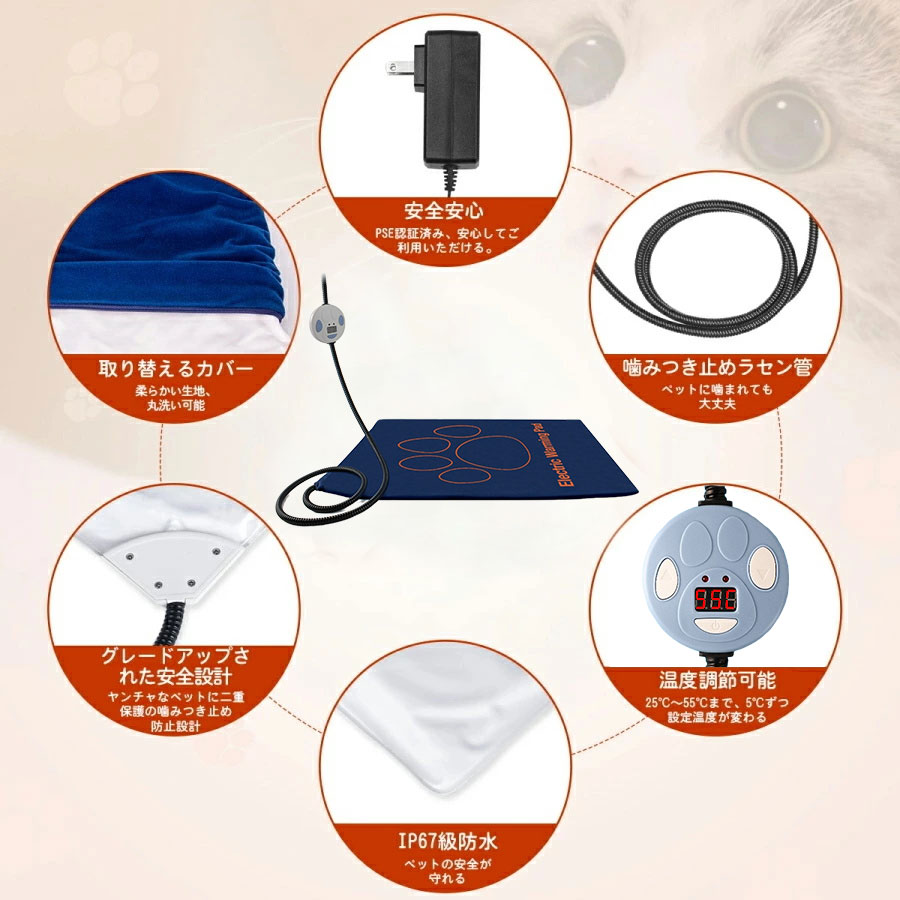 特徴:噛み防止/防水/ホカホカ/省エネ