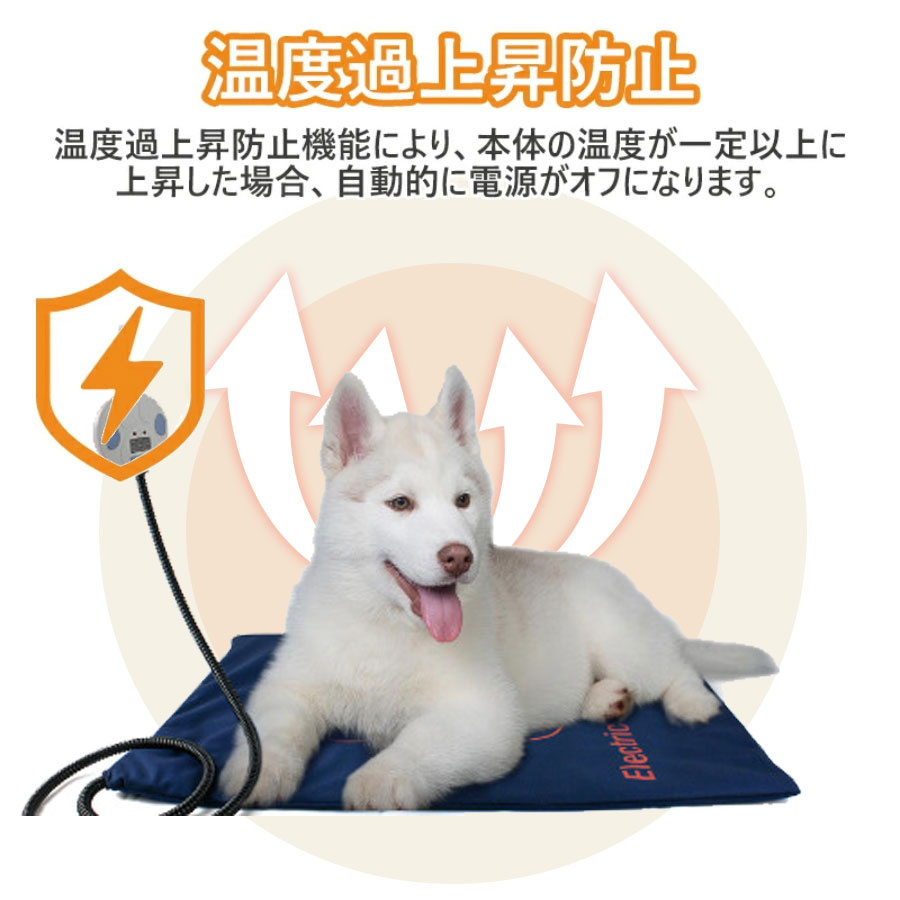 温度設定機能&自動電源オフ機能付き。設定した温度に達ち過熱電圧異常の場合は自動的に電源を切ります。愛犬、愛猫がやけどをしません。