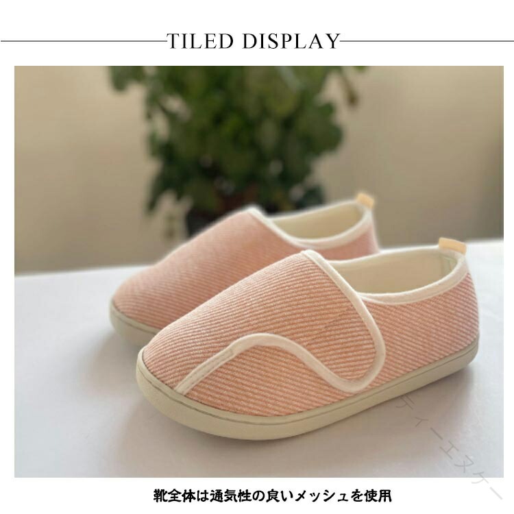 つまずき防止 室内用スリッパマジックテープで着脱便利靴全体は通気性の良いメッシュを使用素足でも気持ちよい履き心地病院内で安心、安全、快適!