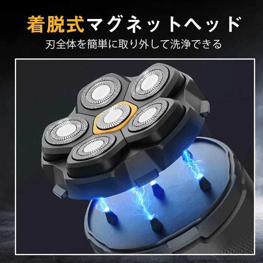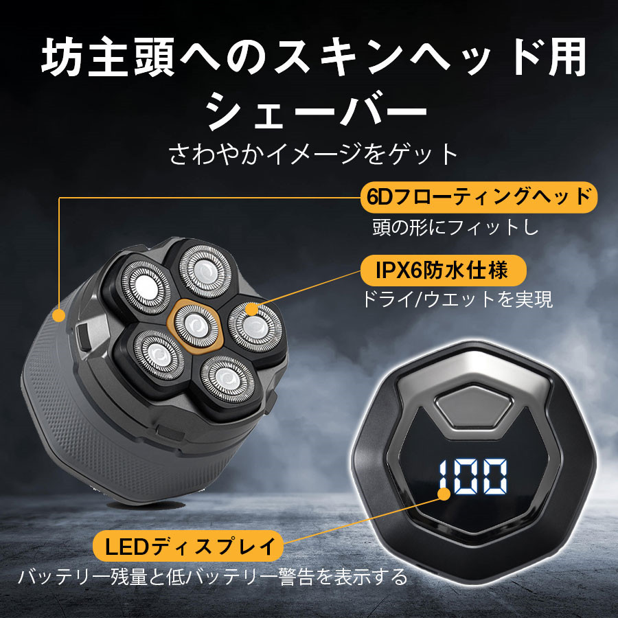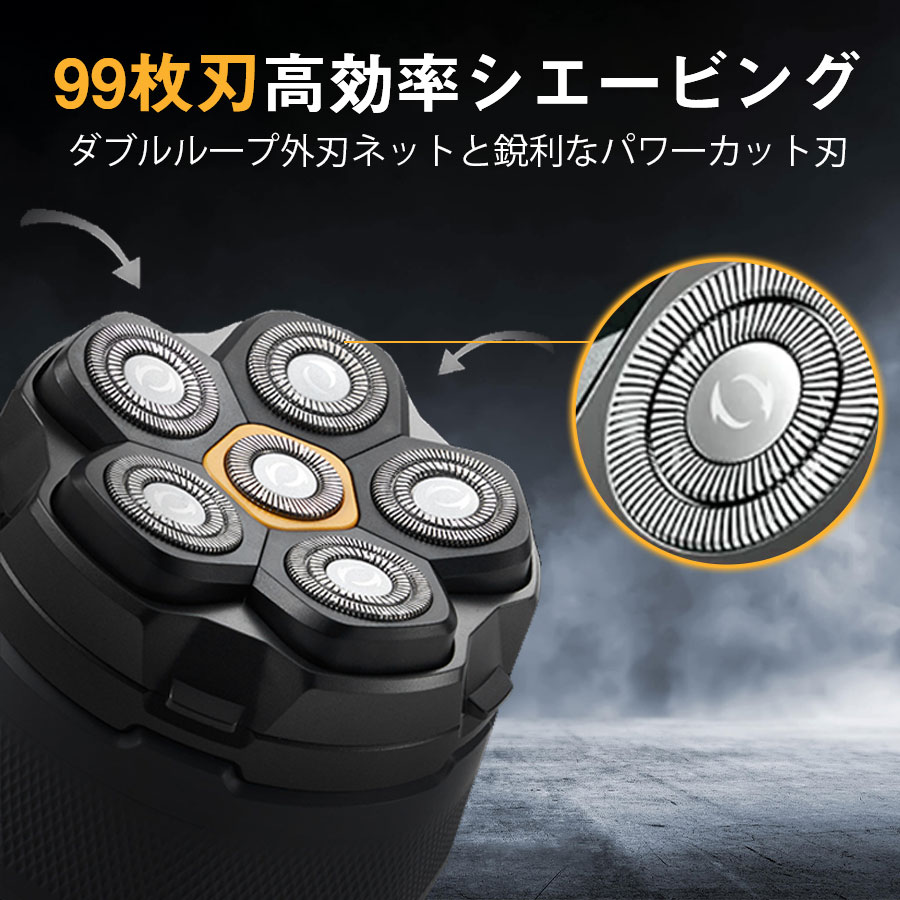 スキンヘッド シェーバー 99枚刃 髭剃りシェーバー 電動シェーバー バリカン メンズ IPX6防水 コンパクト 磁気吸引ヘッド 坊主用 電量表示