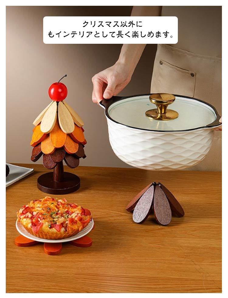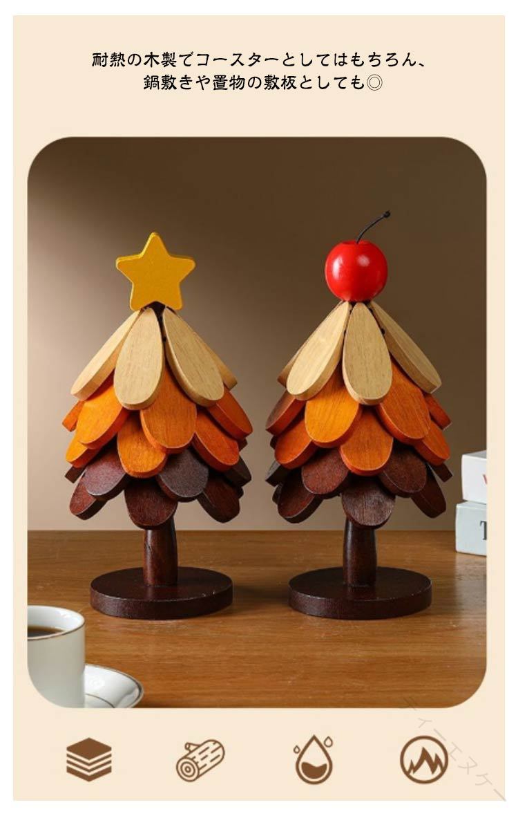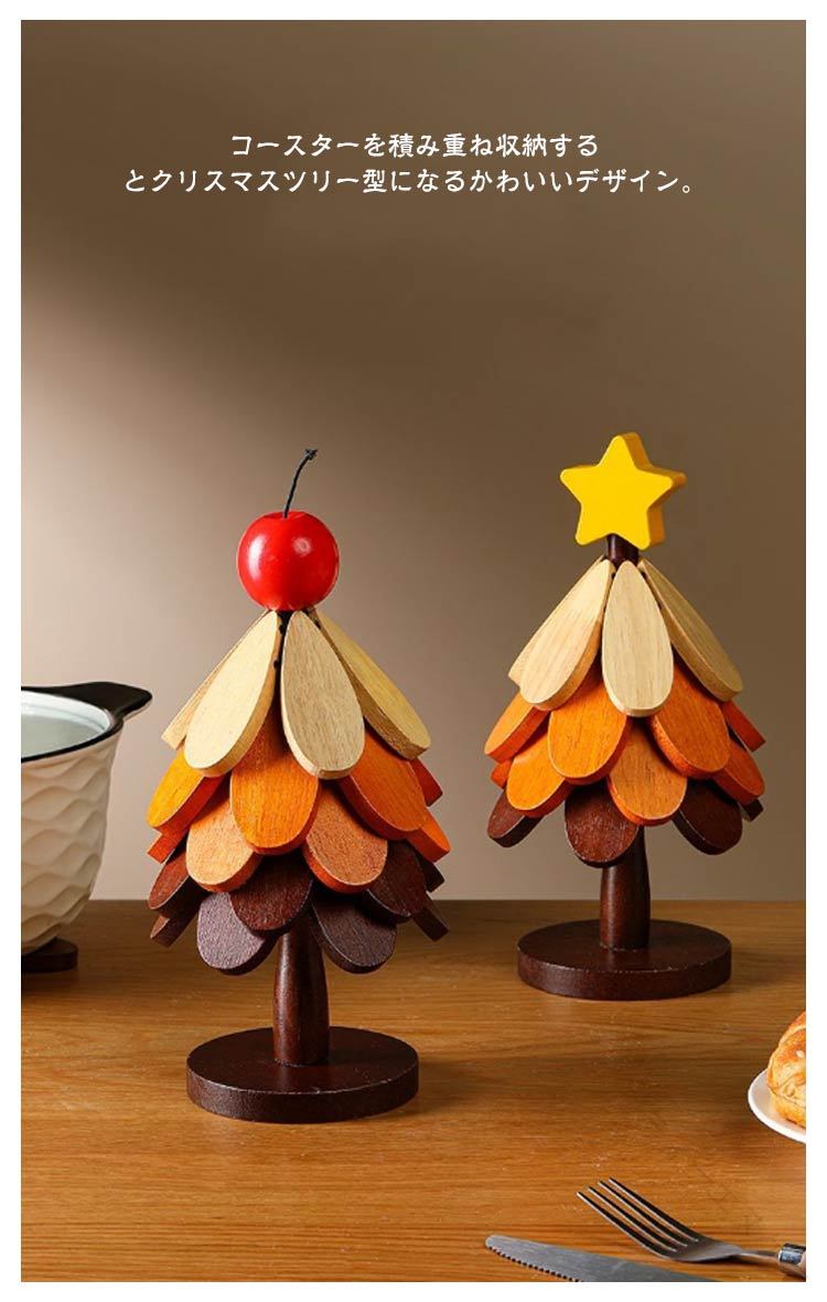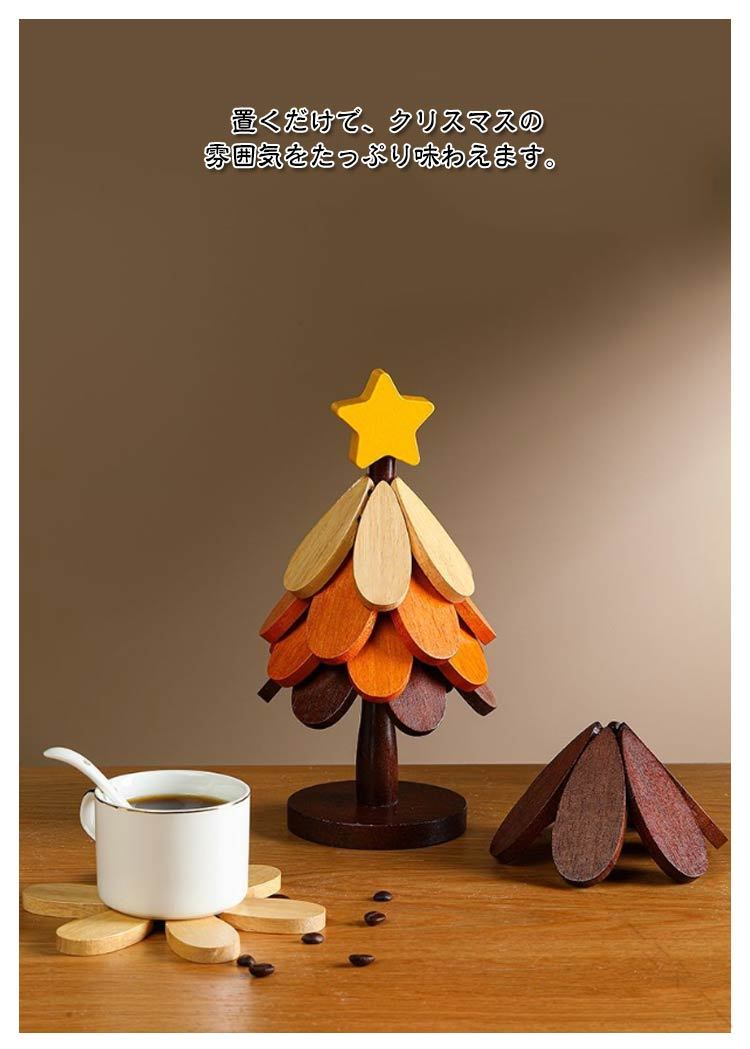 クリスマスツリー 卓上 置物 木製 ツリー クリスマスツリー型 5枚セット 鍋敷き コースター 花モチーフ カップ敷き オブジェ 飾り 食器 茶托 インテリア ミニツリー 敷物
