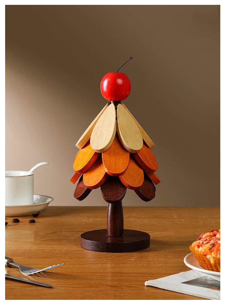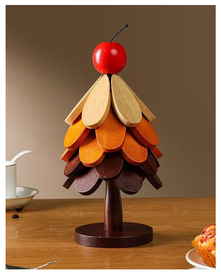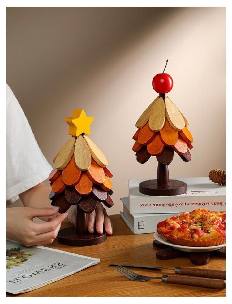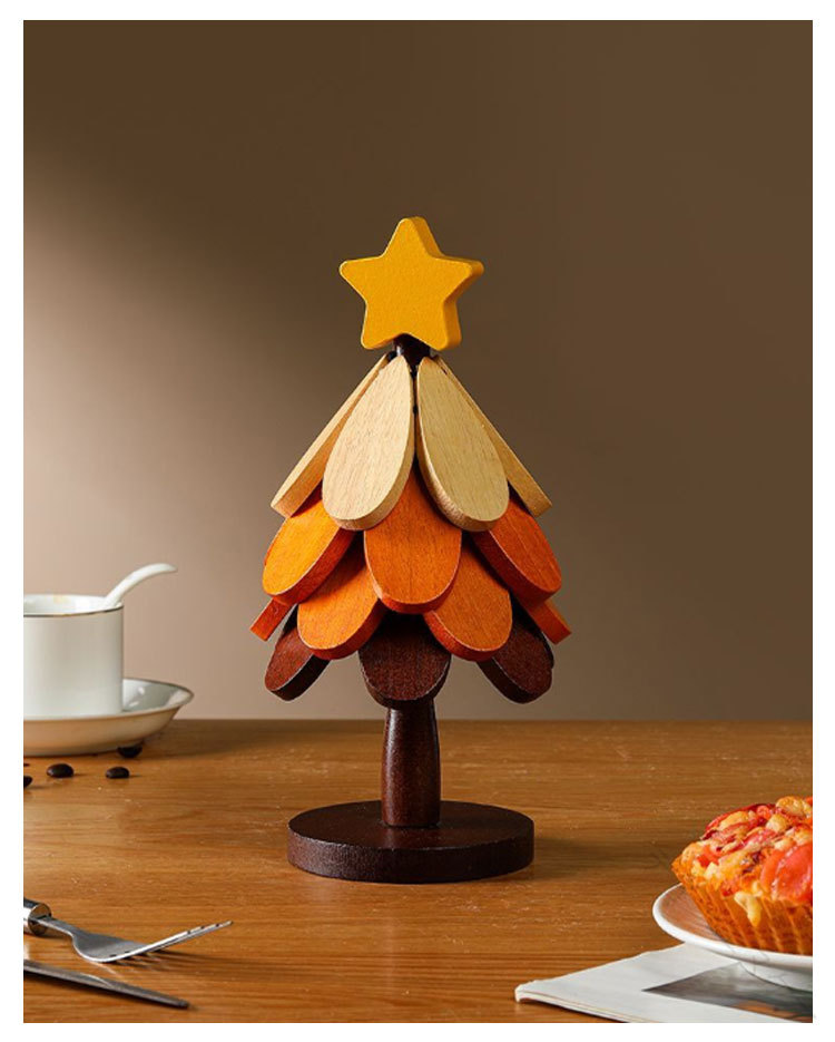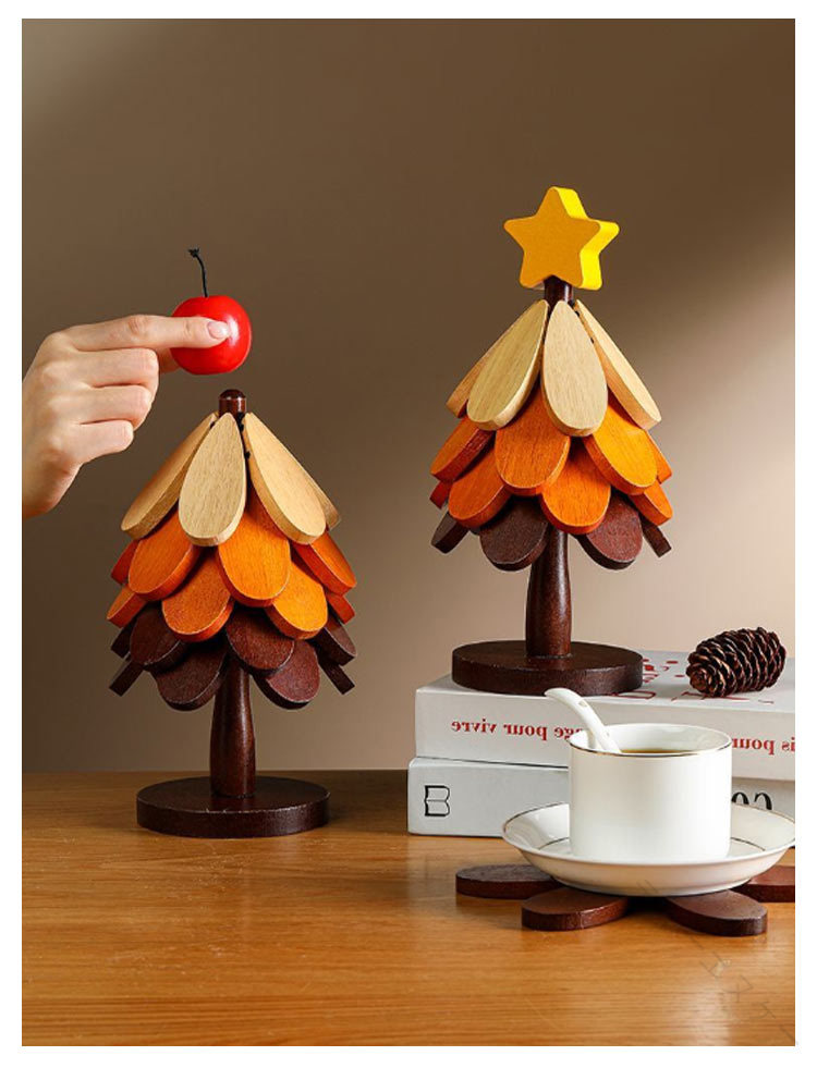 クリスマスツリー 卓上 置物 木製 ツリー クリスマスツリー型 5枚セット 鍋敷き コースター 花モチーフ カップ敷き オブジェ 飾り 食器 茶托 インテリア ミニツリー 敷物