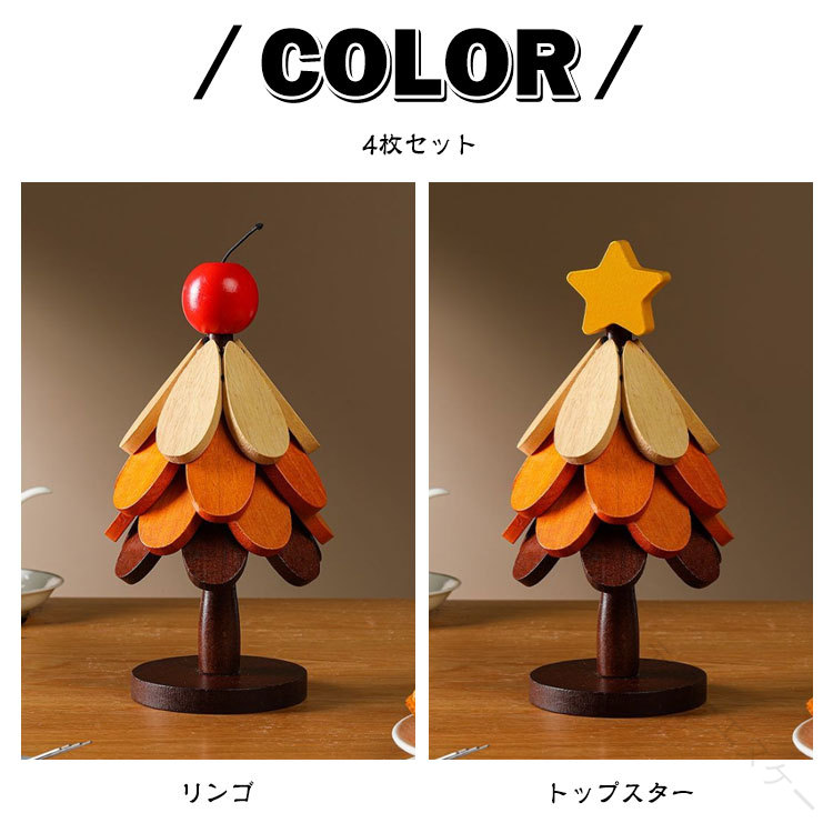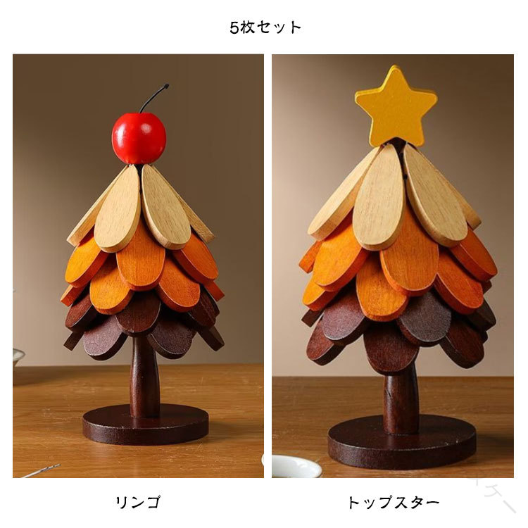 クリスマスツリー 卓上 置物 木製 ツ 4枚セット 5枚セット トップスター リンゴ