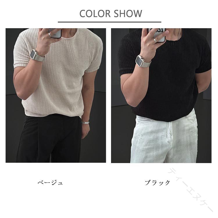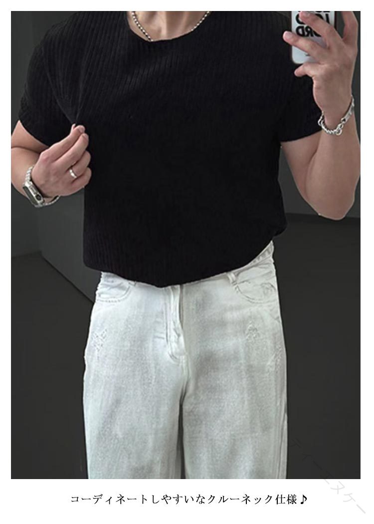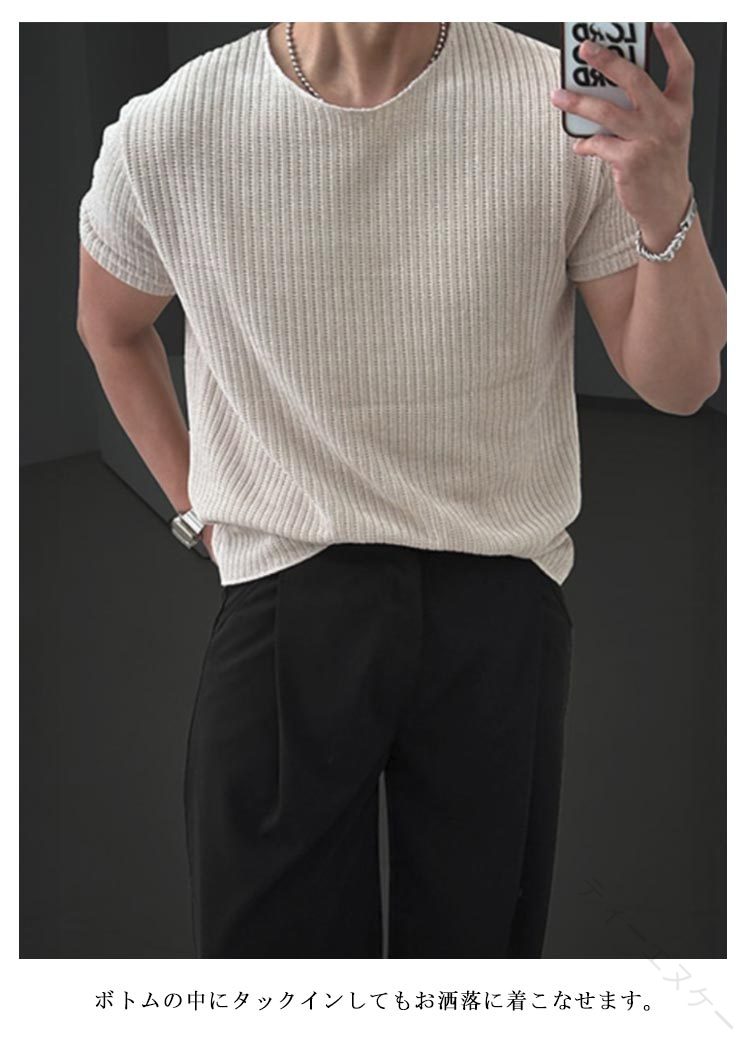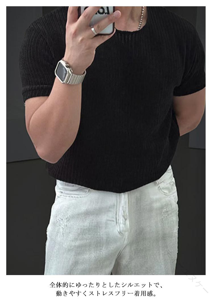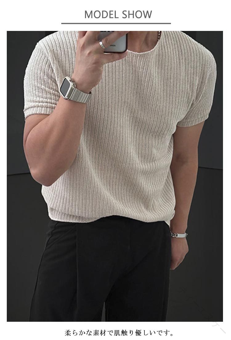 メンズ トップス プルーオーバー サマーニット 半袖 t シャツ 無地 薄手 透かし 編み 接触 冷感 ゆったり 大きい サイズ 柔らかい 快適 キレイめ 上品 春夏 レイヤード カットソー サ 夏服