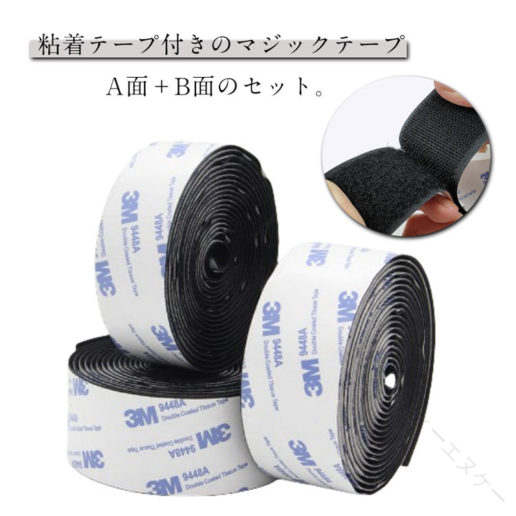 防水 マジックテープ 両面テープ付き 粘着テープ付 幅3.8cm 幅3cm 幅5cm 長さ3m 面ファスナー 超強力 強力 粘着 裁縫 手芸 DIY 網戸 壁 カーテン 展示 便利グッズ 家庭用 固定
