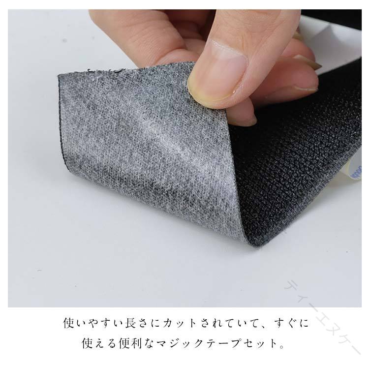 粘着テープ付きのマジックテープA面+B面のセット。粘着剤付で裏面の離型紙をはがせば被着体に簡単に固定できます。使いやすい長さにカットされていて、すぐに使える便利なマジックテープセット。【用途】産業用部品・部材などの固定。カーテンやのれんの固定に。 パネル・写真の貼り付け・パーテーションの接続に。手芸、ソーイング、裁縫の固定に。