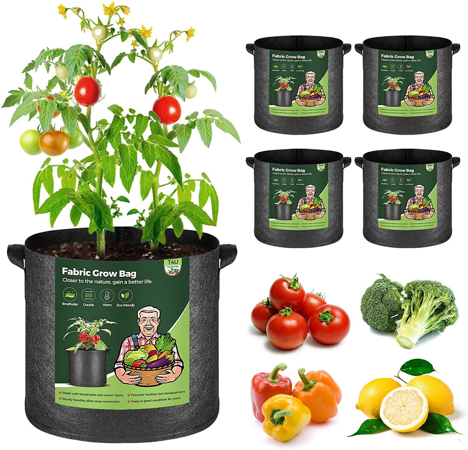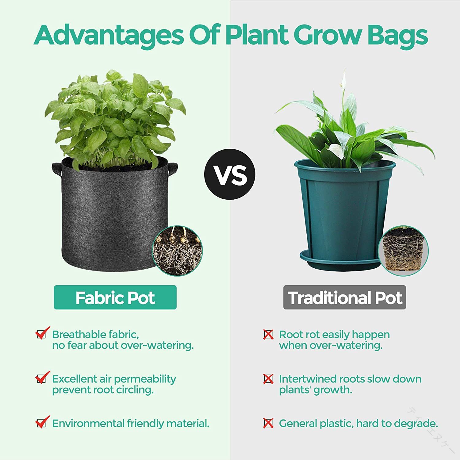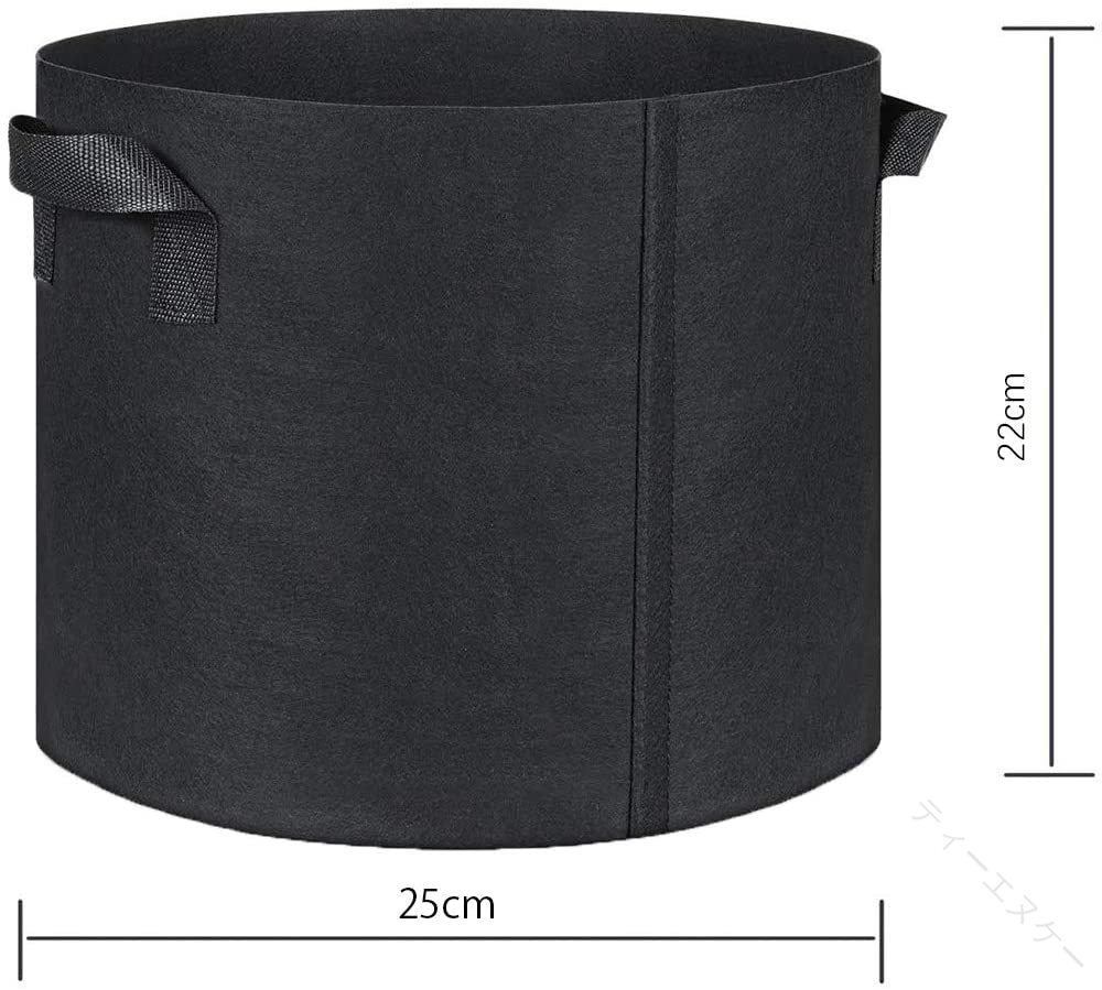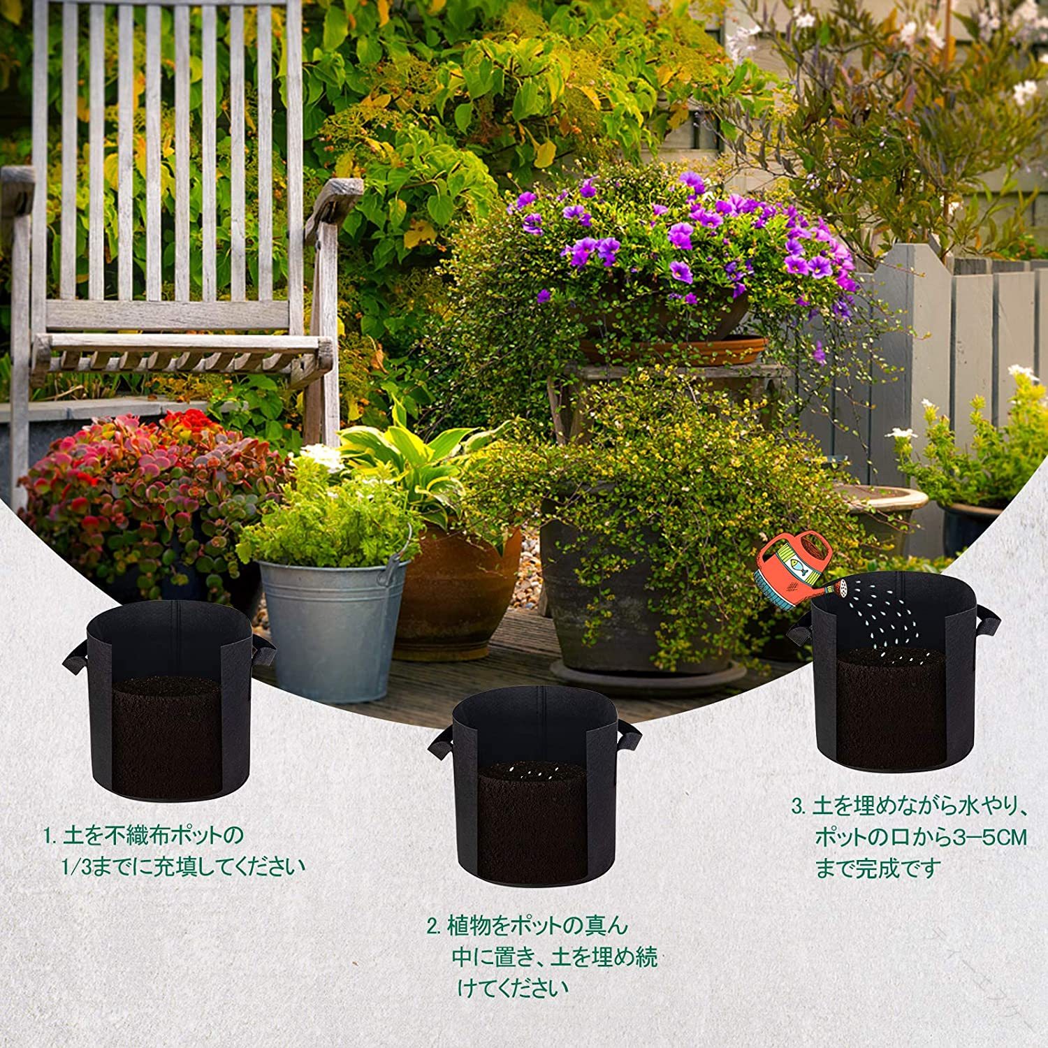 .不織布 プランター 植え袋 は 厚手 で 持ち手付き の 布鉢 です。5 枚入り で 大容量 の ブラック カラー、植木鉢 や 栽培袋 として 鉢植え や 寄せ植え に 使えます。家庭菜園 や 園芸 に 最適 で 発育促進 や 根域制限 にも 効果的 です。花栽培 や 野菜栽培 など 幅広い 用途 に対応 します。。