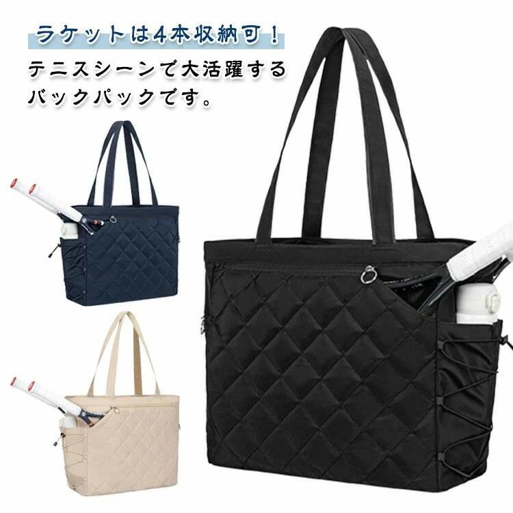 テニスバッグ ラケットバッグ 防水 ジムトートバッグ 4本 軽量 黒 大容量 ジムバッグ ラケットバック テニスバック テニス