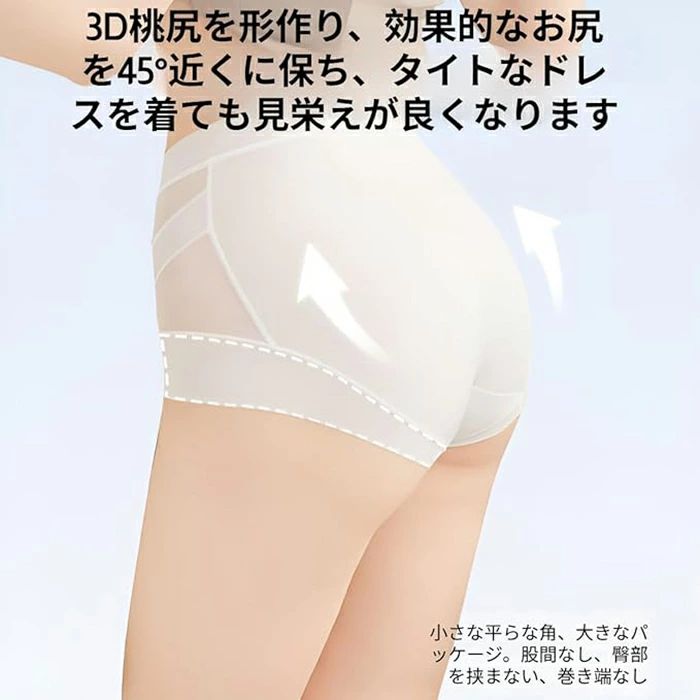 【プロ級ヒップアップ】45度近い角度計算で開発された3D立体裁断が、ヒップトップから太もも裏までを引き上げる力学構造。ジーンズやタイトスカートの下に着用してもラインが美しく整います。