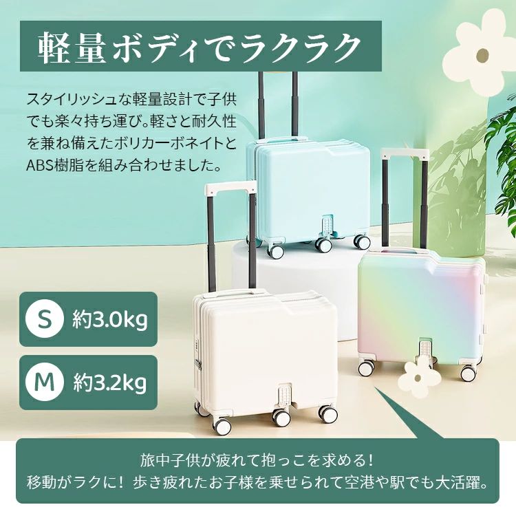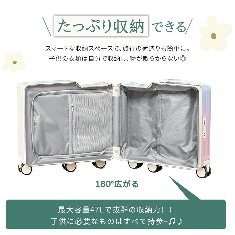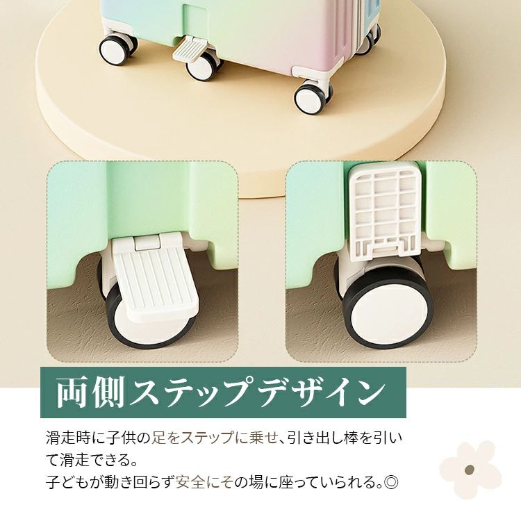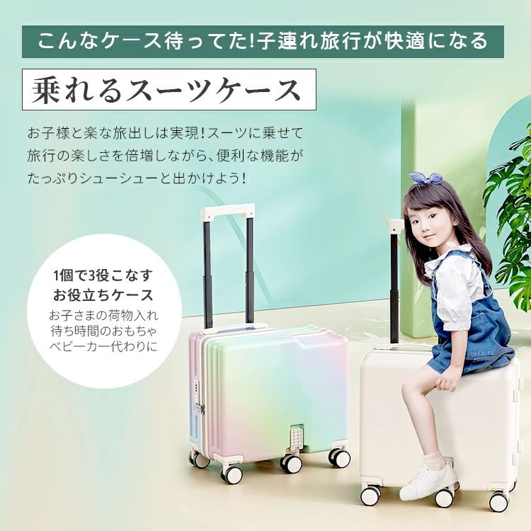 静音 キッズキャリー キッズトラベル 子供が乗れるキャリーケース ホワイト メッシュポケット 虹色 子供用 ブルー 40L パープル ブラック 子供が乗れるスーツケース ステップ付き 折り畳 イエロー