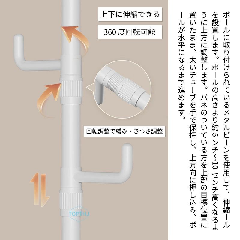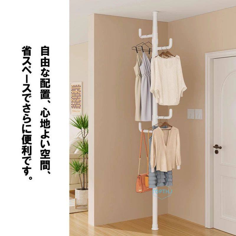 突っ張りポールハンガー つっぱりポールハンガー ハンガーポール 子供 ハンガーラック おしゃれ 玄関 突っ張り式 スリム 棒 コンパクトワンタッチ式 コートハンガー 強力 高さ調節 省スペース 春 棚