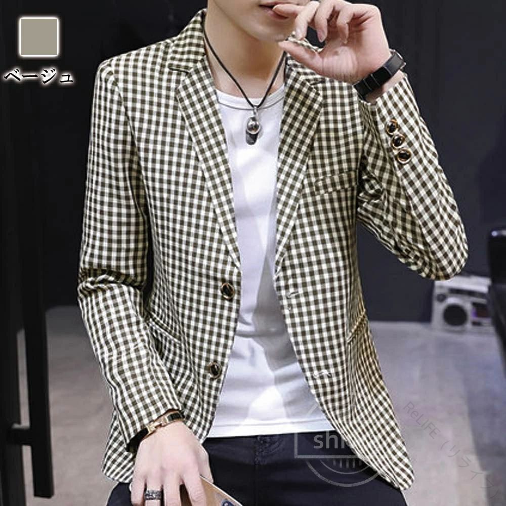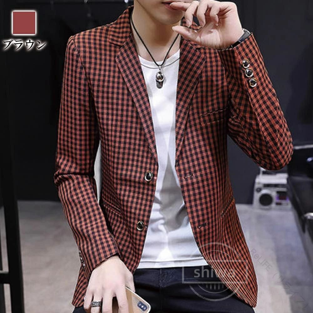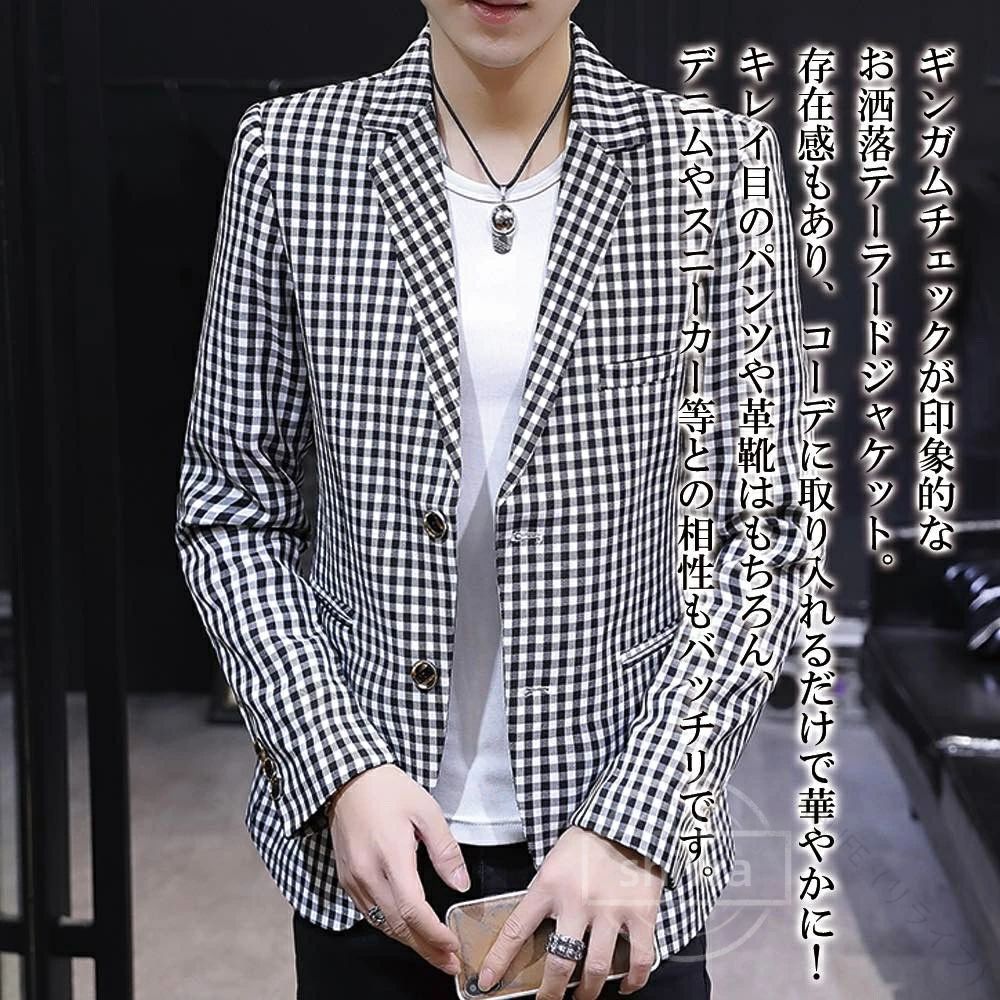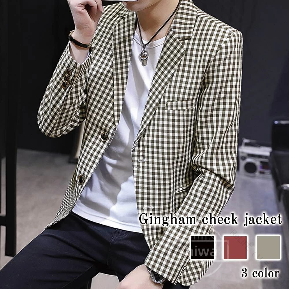 ギンガムチェックジャケット おしゃれ テーラードジャケット メンズ 春秋用軽量素材で快適な着心地 スマートなシルエットと上質なデザイン カジュアルからビジネスまで対応