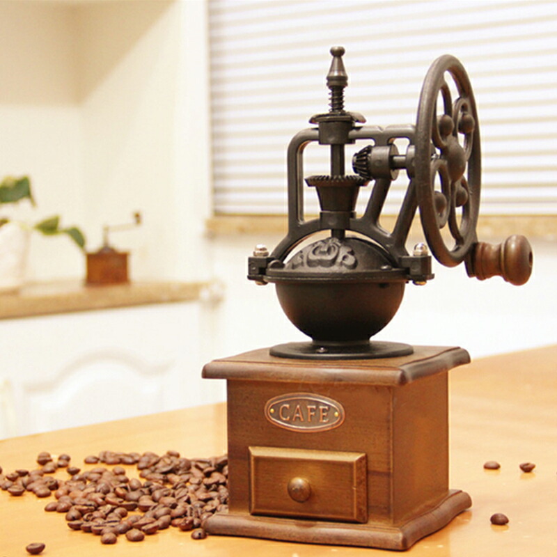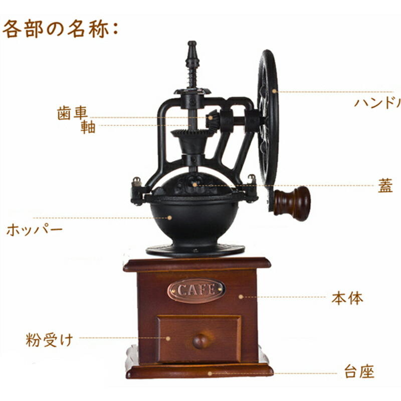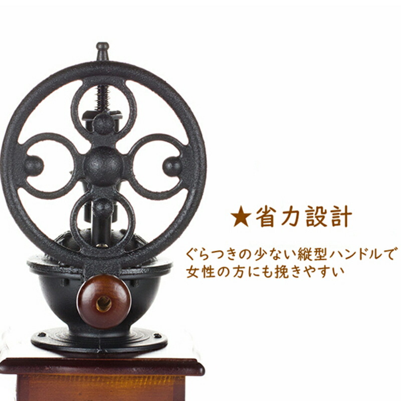 コーヒーミル 手挽き 手動 コーヒーグラインダー セラミック臼 手動式 粗さ調節 木製 アンティーク調 レトロ ハンドミル 高級 家庭用 プレゼント ギフト お祝い アンティーク