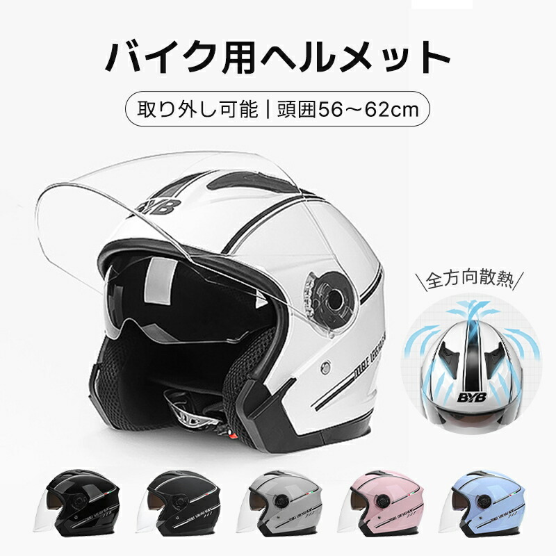 バイク用 ヘルメット バイク おしゃれ グレー ホワイト ブラック艶あり ブラック艶なし ピンク ブルー