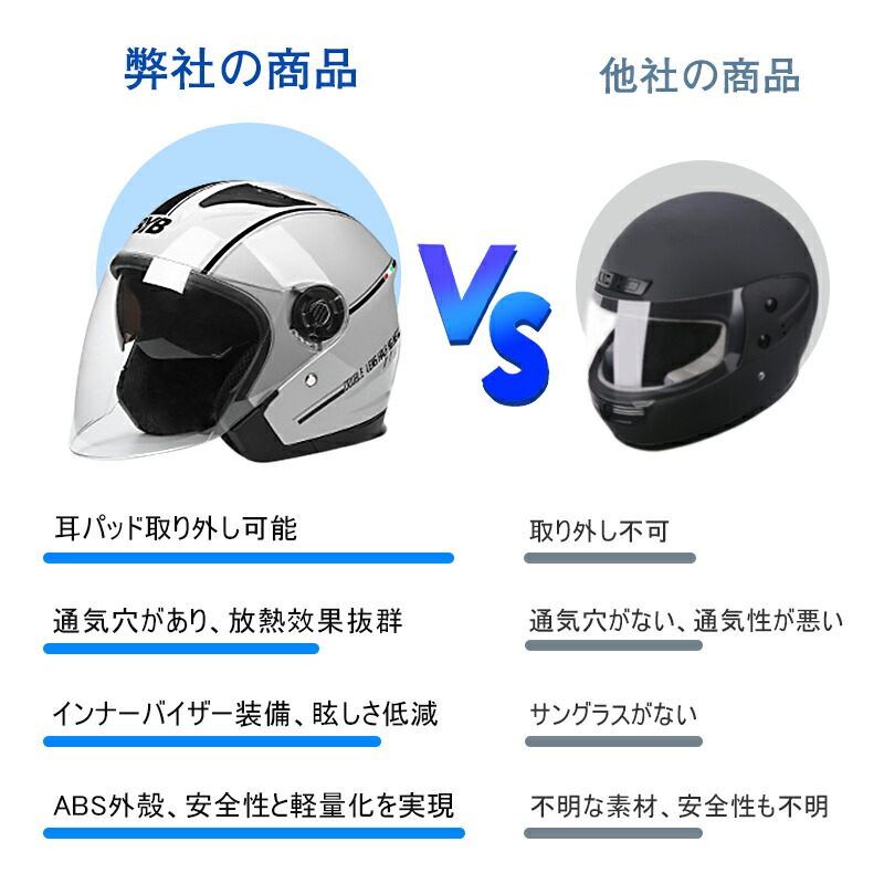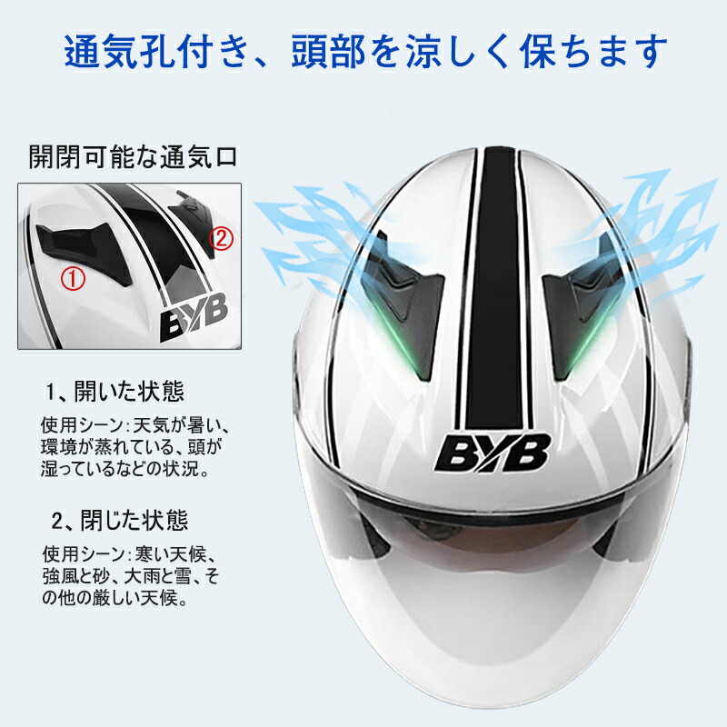 ヘルメットの通気性:換気孔があって、冷気を導入、ヘルメット内部の熱気を排出し、良質的な空気対流システムを形成します。静音設計で風切り音が低減。より快適なツーリングが楽しめる。