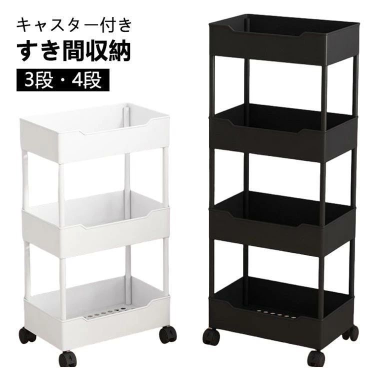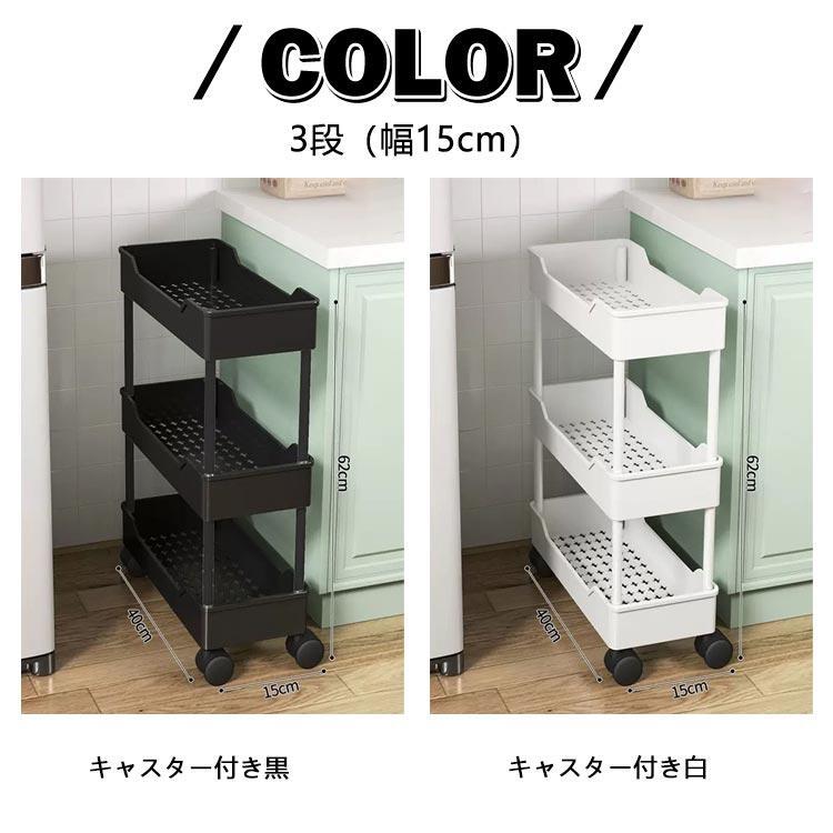 隙間ラック 幅15cm 幅20cm キ キャスター付き白 キャスター付き黒 3段(幅15cm) 4段(幅15cm) 3段(幅20cm) 4段(幅20cm)