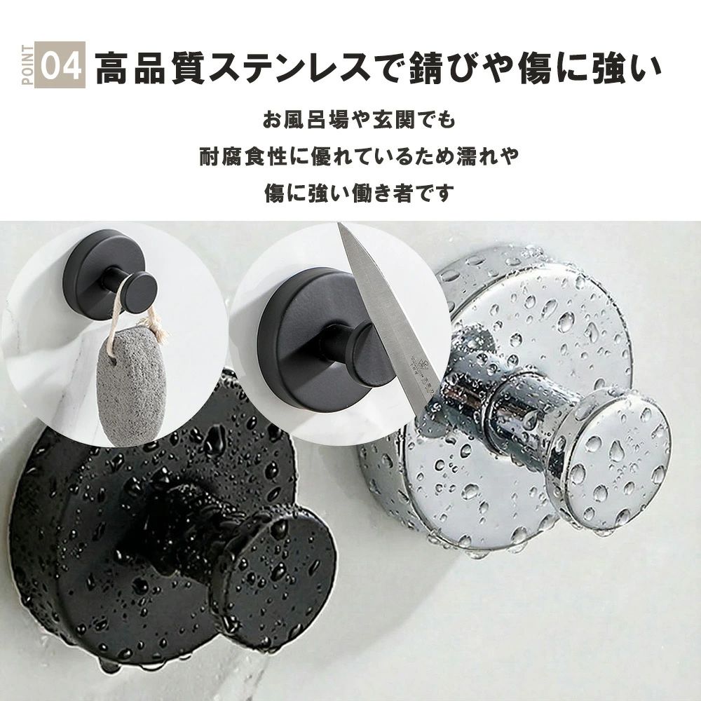 4個セット 2個セット 傘フック タオル掛け 小物掛け 玄関ドア 冷蔵庫 鏡 ガラス 穴あけ不要 賃貸 モノトーン ステンレス 防水 防錆 貼り直し再利用 工具不要 簡単 キッチン 玄関 浴室 洗面所