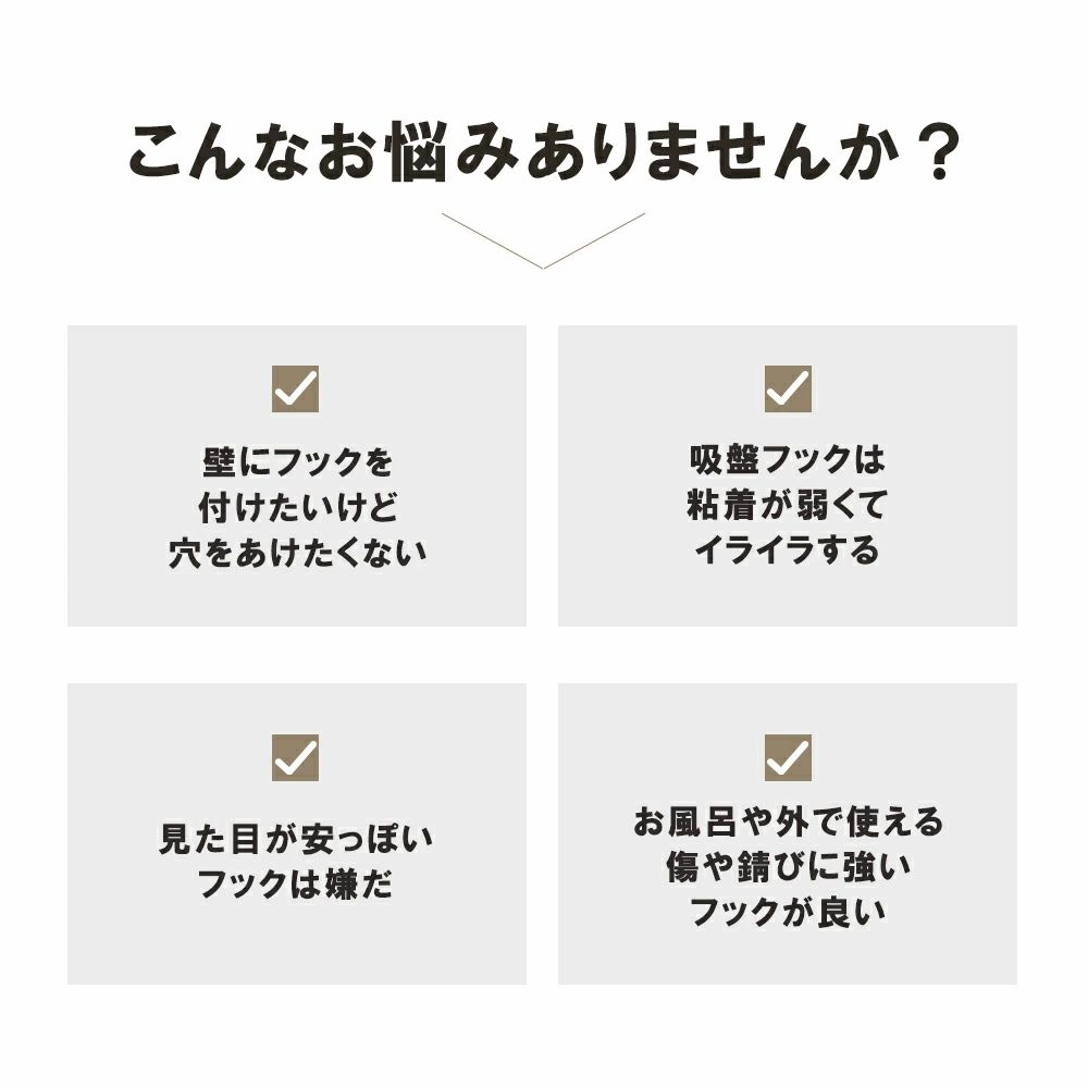 ・耐荷重約3kg(目安)。日常の小物掛けに幅広く対応。