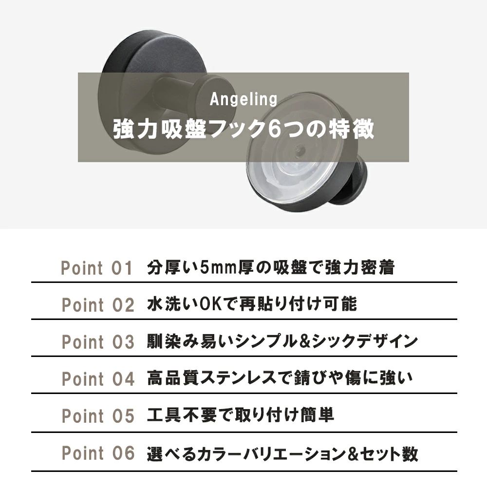 Angelingの吸盤フックは、穴あけ不要で空間を傷つけにくいのが魅力です。貼って外してまた使えるから、模様替えにも柔軟に追従します。暮らしの“ちょっと不便”をスマートに整える一品として、ぜひお試しください。
