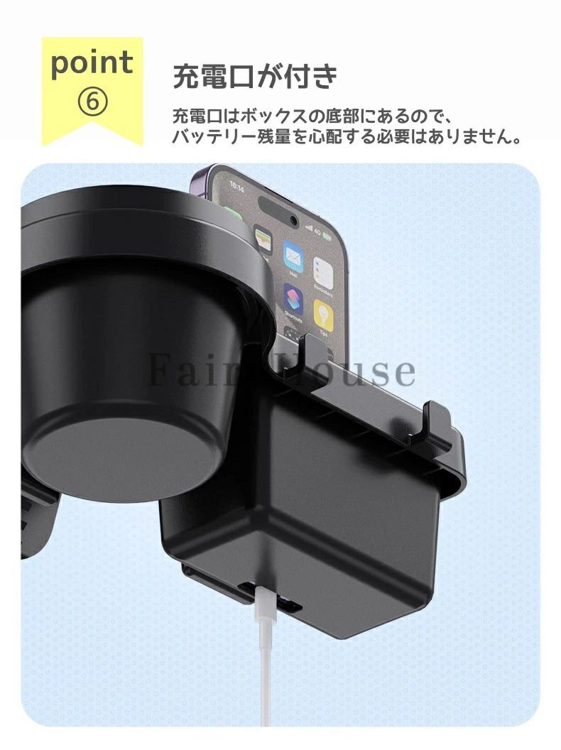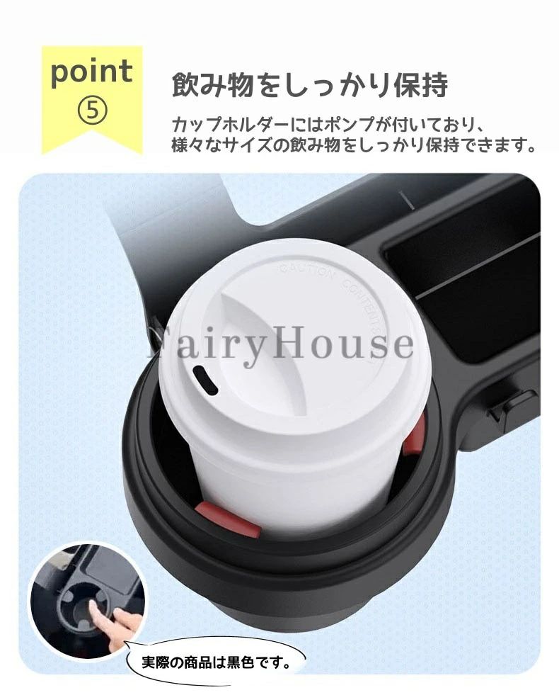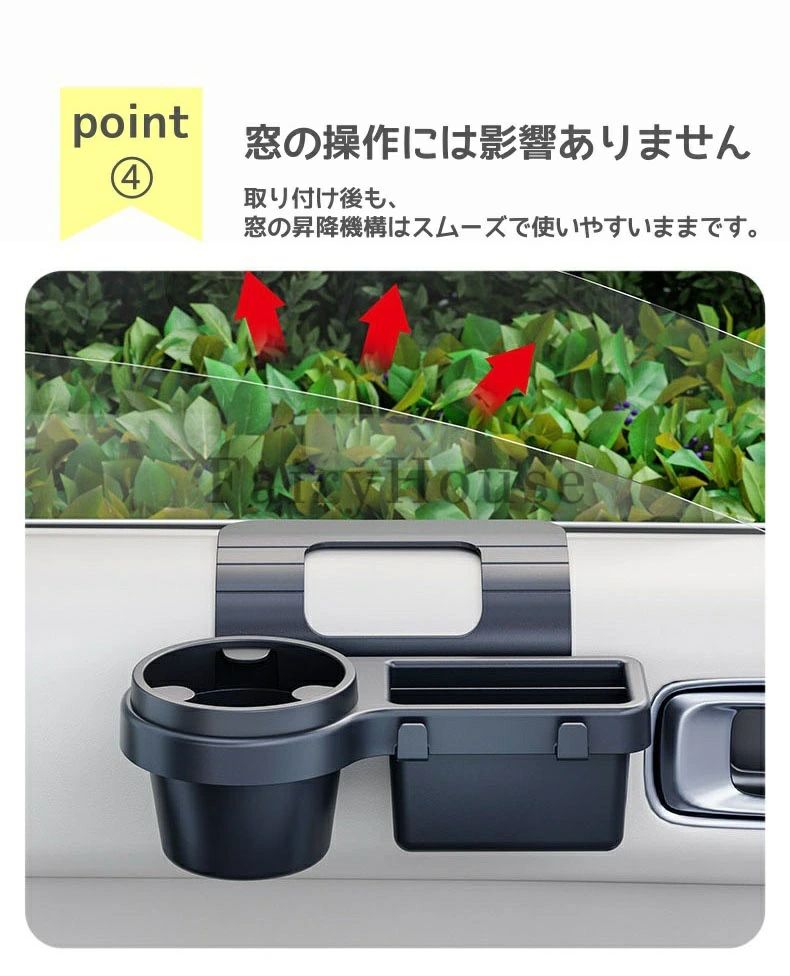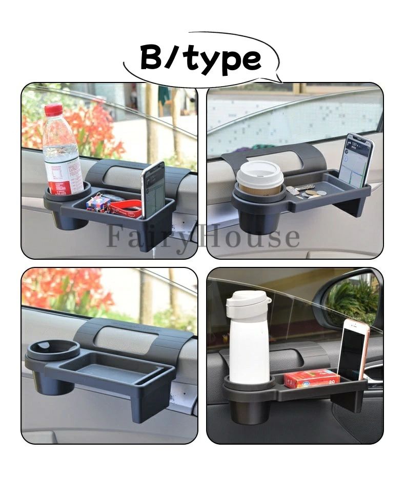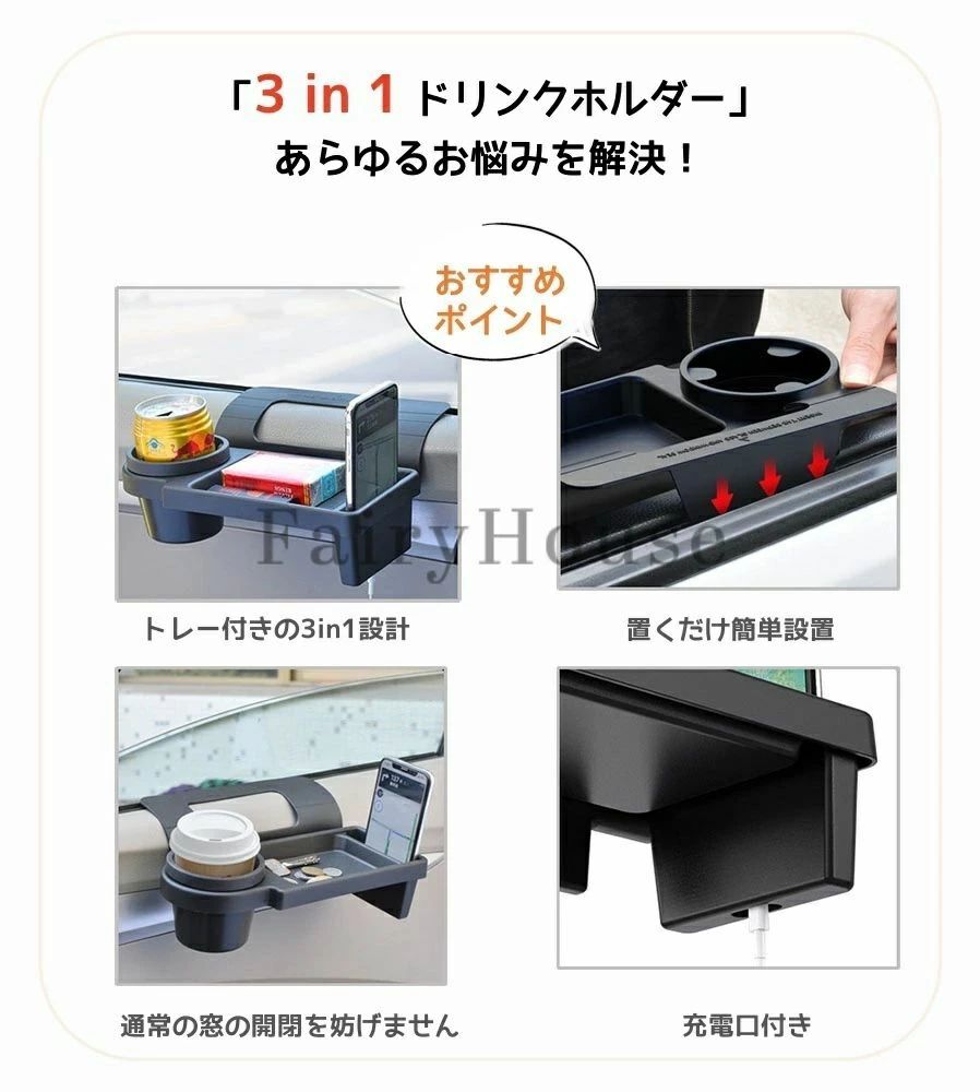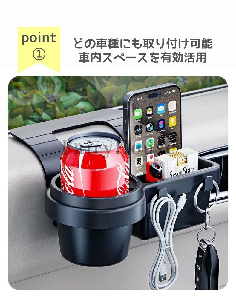 この3 in 1 車載ドリンクホルダーは、運転中の快適性を高めるために設計されています。トレイとフックがドリンク、スマートフォン、小物を効率的に収納します。充電口付きで、外出先でも簡単にデバイスを充電できます。窓枠に取り付けるだけで振動を軽減し、安定した使用を実現します。取り付けも簡単で、ミニマルなブラックのデザインはどんな車内インテリアにもマッチします。