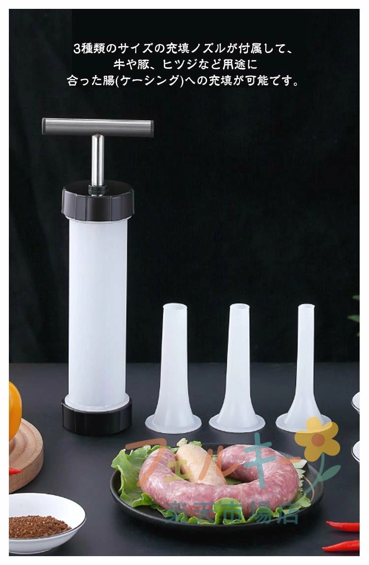 手作り簡単操作 ソーセージ充填機 家庭用腸詰め器 手動サラミメーカー ソーセージスタッファー 3種類ノズル付き