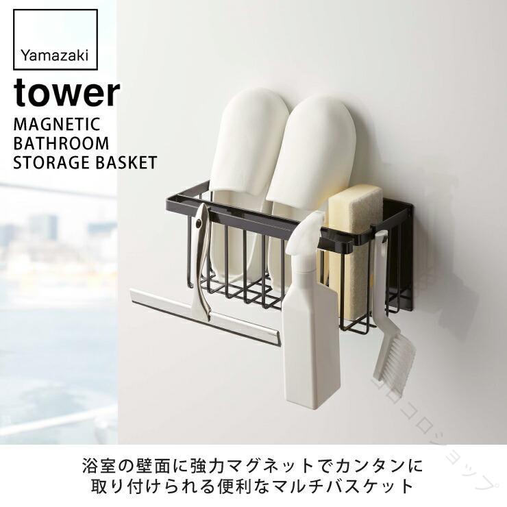 タワー マグネットバスルームバスケット ホワイト ブラック タオルラック 収納用品 浴室収納 バスラック 磁石式で簡単設置 水回り整理に最適な浴室収納グッズ バス収納