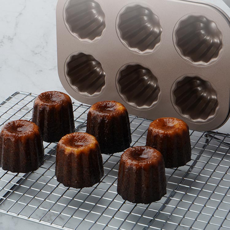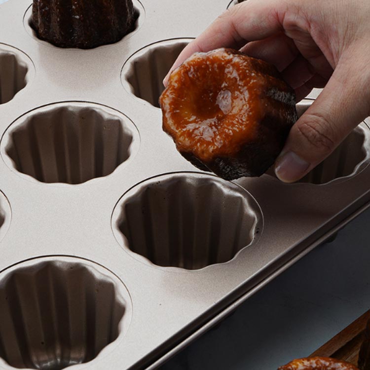 カヌレ焼き上げは、独特のシャンペンゴールドの配色があっで、特殊なカヌレのデザインに合わせて、見た目がきれいで、使いやすくなっています。