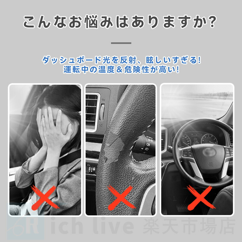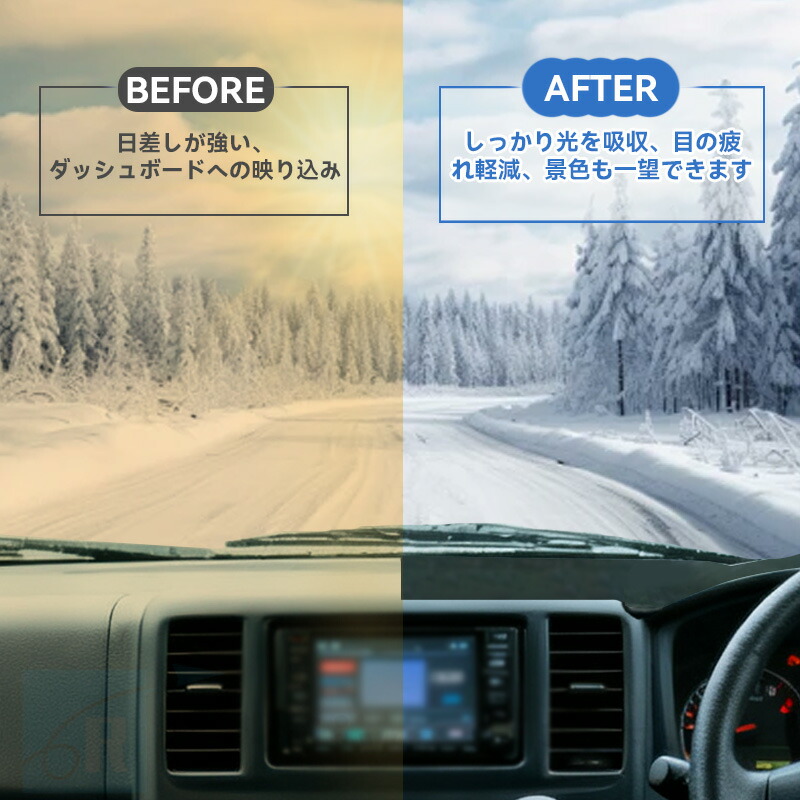 日差しがフロントガラスに反射するのをしっかり防ぎます! 運転中に「まぶしくて見えない!」「前が見にくい!」という問題をなくし、快適で安全なドライブをサポートします。夏の車内が暑くなるのを防ぐのにも役立ちます!