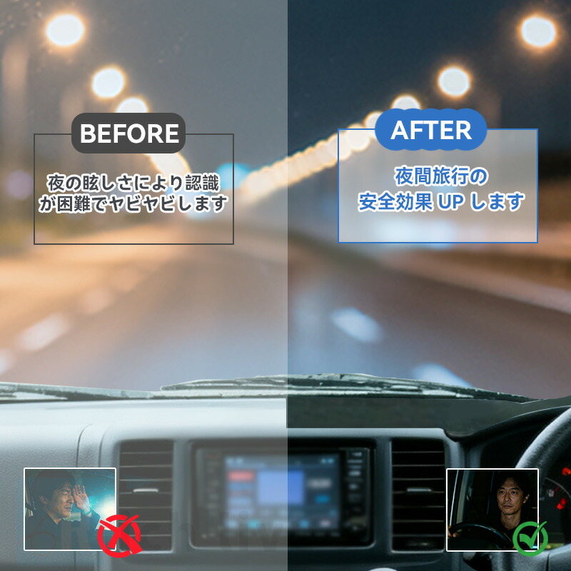 光をしっかり吸収して、目が疲れにくくなります。 運転中の視界も確保できて、昼も夜も快適にドライブできます。夜間運転の安全性も高まります!