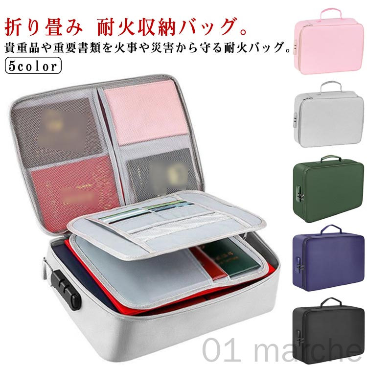 折り畳み 耐火収納バッグ。貴重品や重要書類を火事や災害から守る耐火バッグ。グラスファイバー製なので炎に強く頑丈です。大切な書類や貴重品の管理に。プライバシーを守るダイヤルロック付き。持ち手付きで持ち運びもラクラク!パスワード設定方法:1.初期設定000にしてボタンを押して開きます2.ボタンを押しながら番号変更する事で変更可能3.変更後はその番号に合わせる事で解除が可能に!