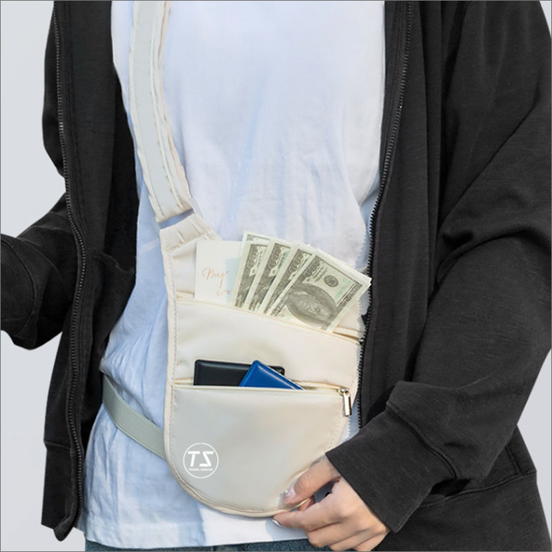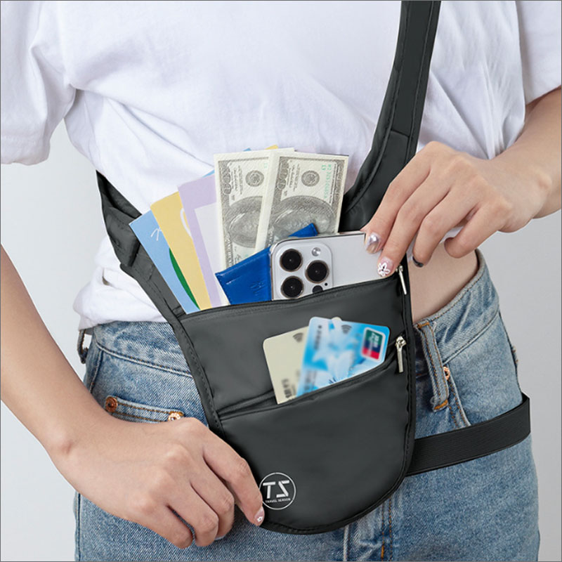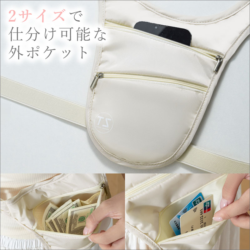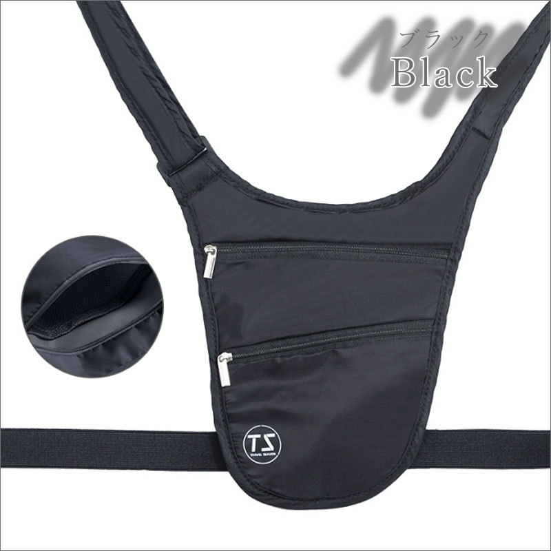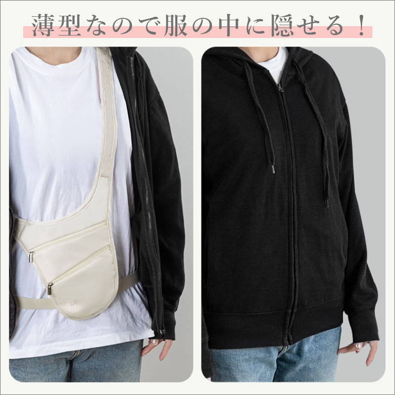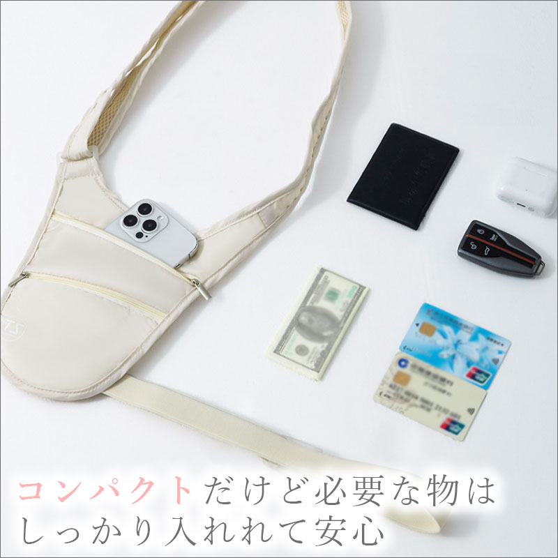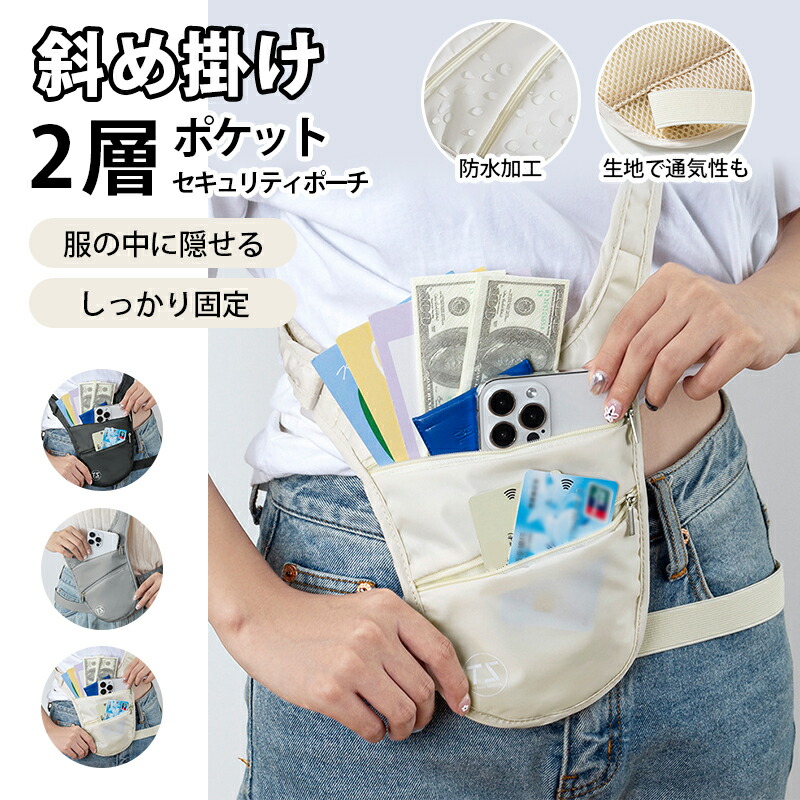 セキュリティポーチ ショルダー ポーチ 薄型 女性 男性 斜め掛け ウエスト 腹巻き 首下げ 軽量 トラベル 旅行 便利グッズ スマホ カード お金 財布 貴重品 持ち運び サイズ調整 ゴムベル 小物