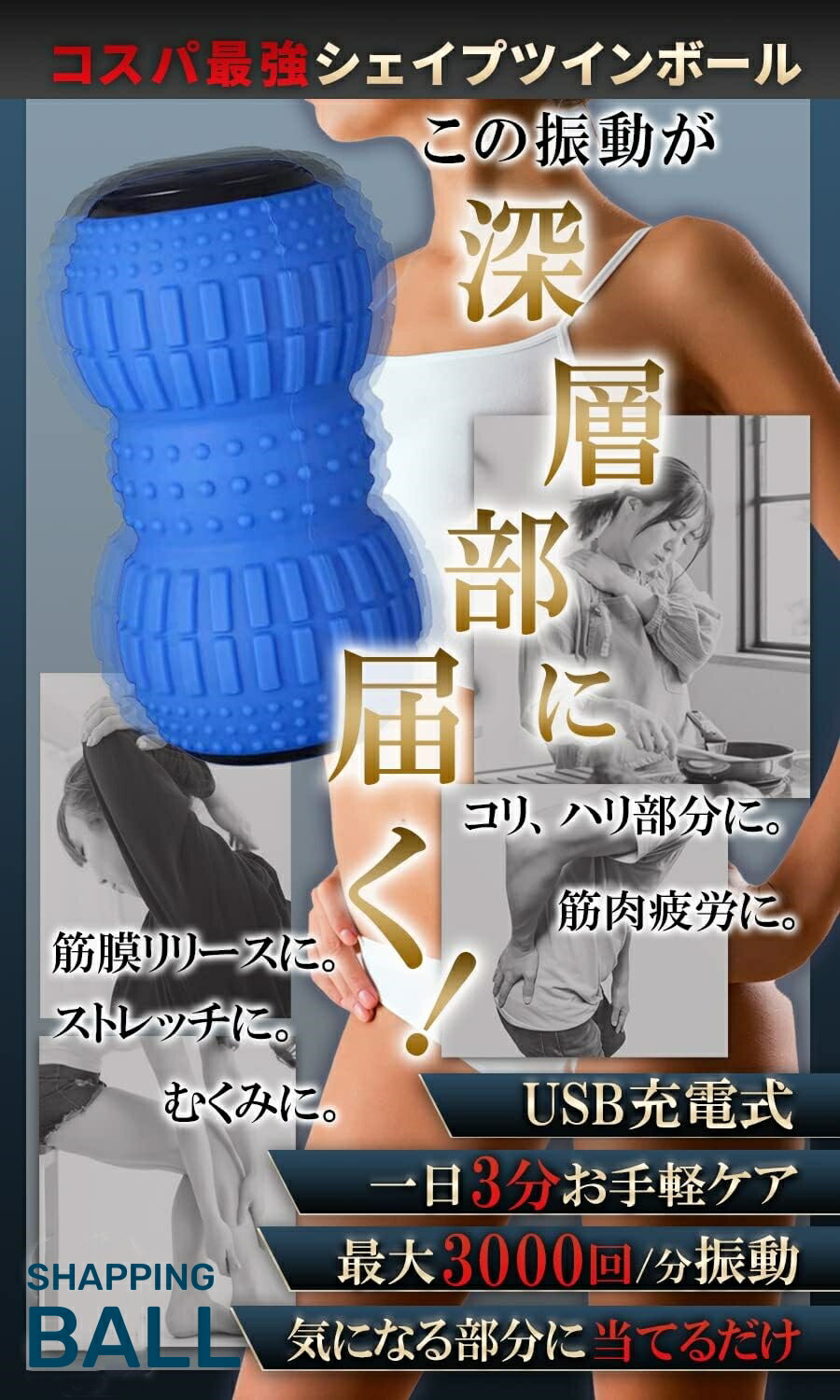 シェイプツインボール 口コミ 振動 振動マシン 3d ems ミニ ems付き ストレッチボール 腰痛 足裏 電動 フィットネスボール 骨盤 バランス 小