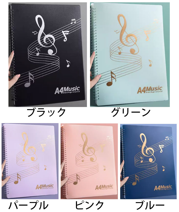 楽譜入れファイル 書き込み ブラック グリーン パープル ピンク ブルー 40枚 60枚 80枚 書き込みできる A4 中学生 高校生 バンドファイ 楽譜用ファイル