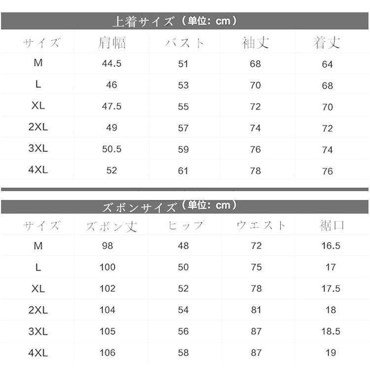 サイズ:肩幅/バスト/着丈/ウエスト/パンツ丈