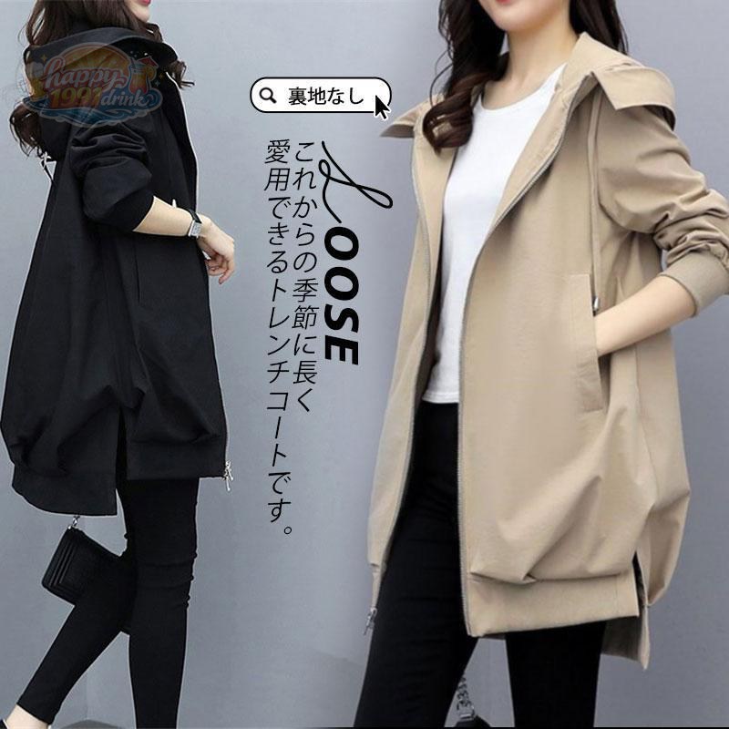 トレンチコート レディース スプリングコート ジャケット 春コート マウンテンパーカー 春服 アウター ジップアップ フード付き ゆったり