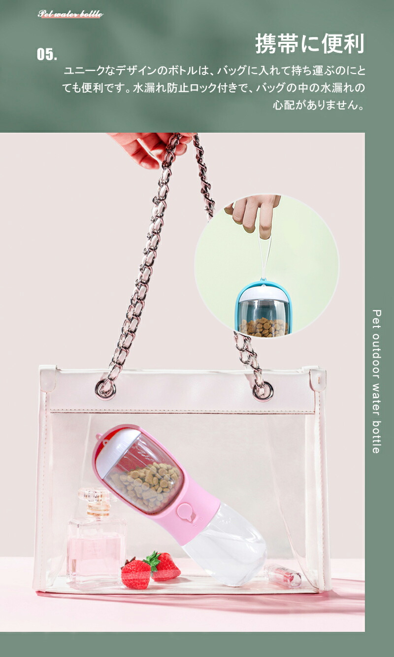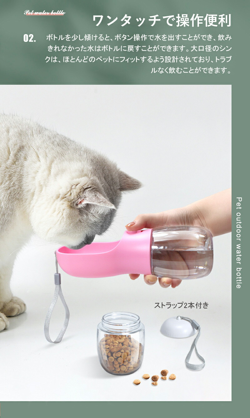 ペットウォーターボトル ペット 水 水飲み ボトル ペットボトル 犬用 猫用 給水器 水筒 お出かけ おやつ アウトドア 犬グッズ ペット用品 散歩 外出 水漏れ防止 ワンタッチ 犬用水飲み器 旅行