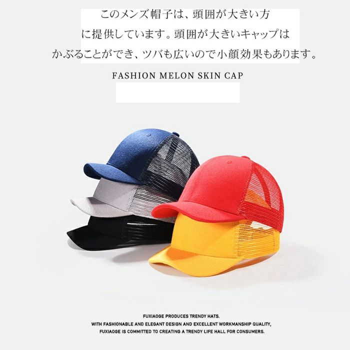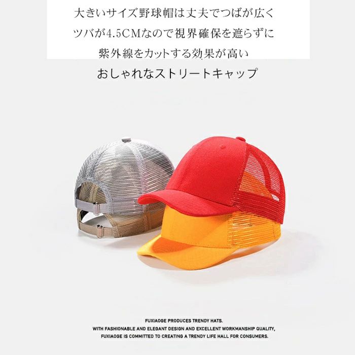 キャップ メンズ 大きいサイズ 帽子 深め 特大 61-65cm メッシュキャップ 無地 紫外線対策 ワークキャップ サイズ調整可能 ビッグサイズ 頭が大きい方 カジュアル ツバ短 ツ シンプル