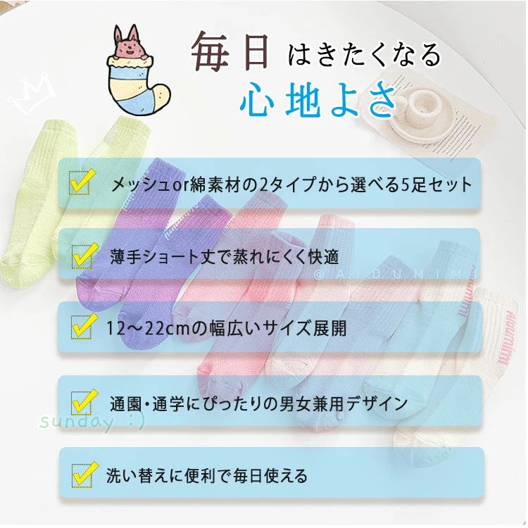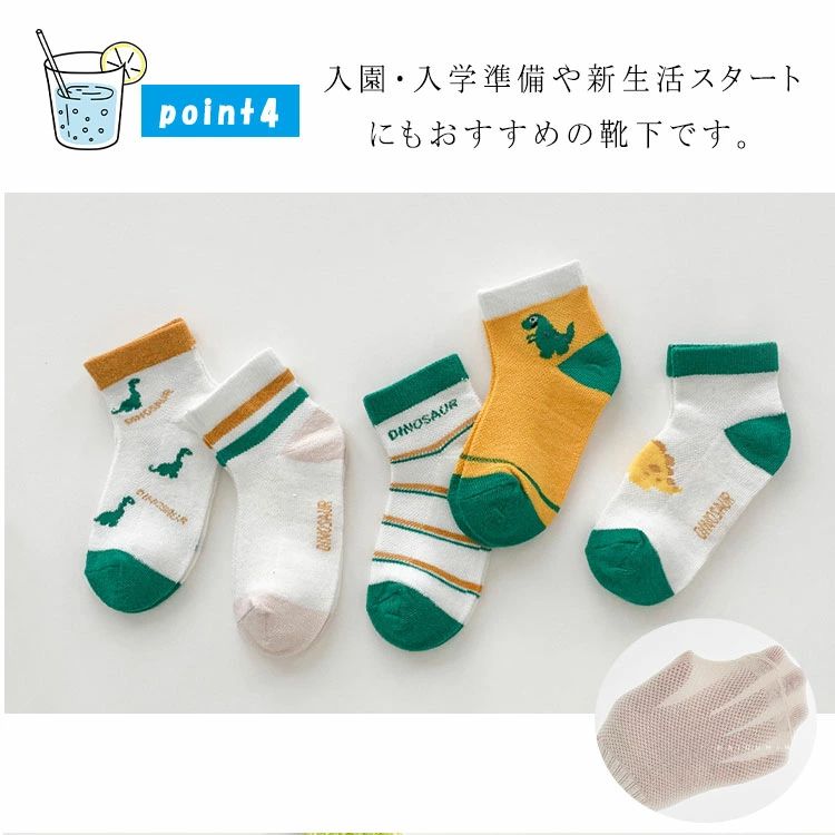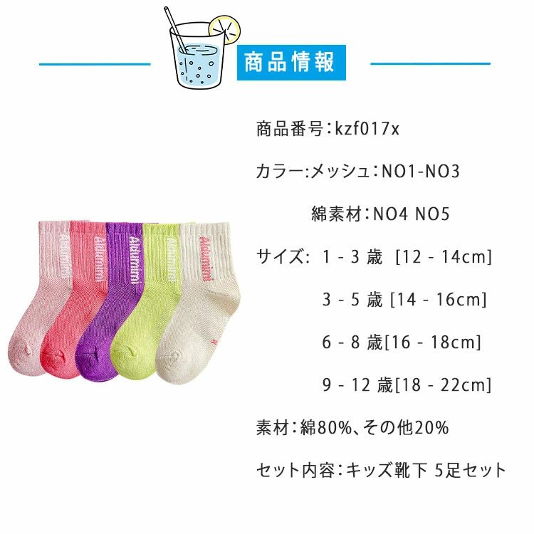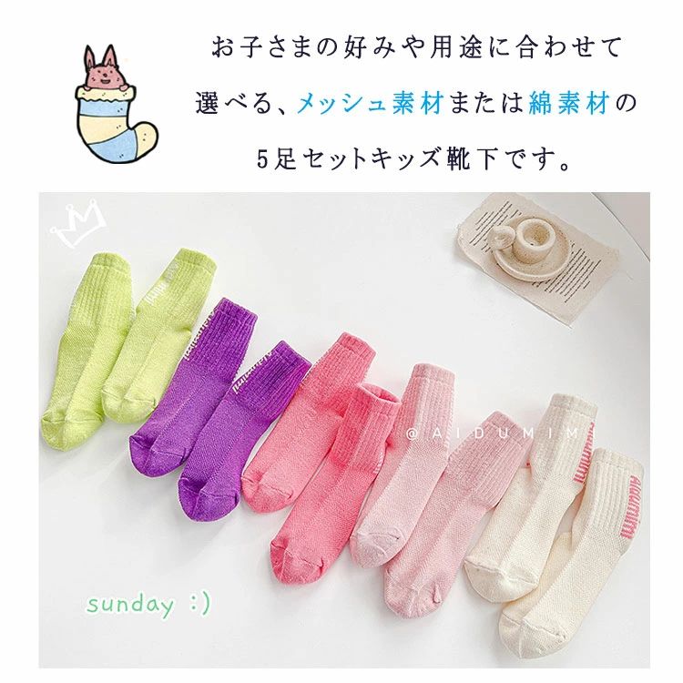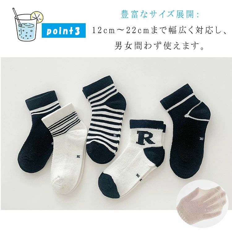 【5足セット】キッズ 靴下 メッシュor綿素材 選べる2タイプ 薄手 ショート丈 通気性抜群 男の子 女の子 14~22cm 通園 通学 春夏 蒸れにくい
