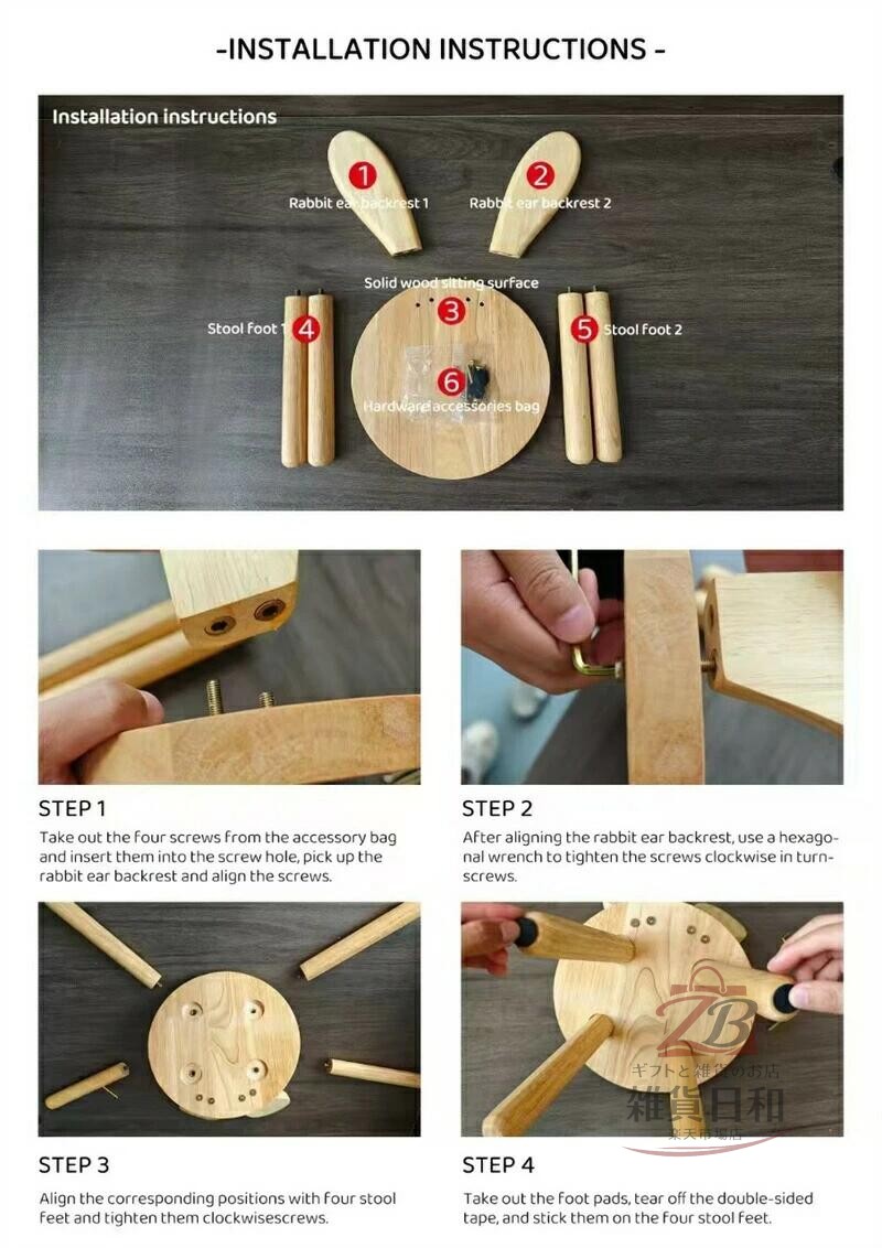 木製 キッズチェア うさぎ 耳付き ローチェア 子供椅子 アニマルチェア 可愛い 子ども椅子 小さい 高26cm