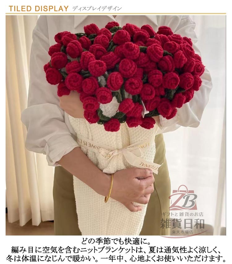 60cm 花束ブランケット 完成品 ニット製 フラワーブランケット ふんわり毛布 かぎ針編み 北欧風 マルチクロス ローズ バラ ギフト ひざ掛け